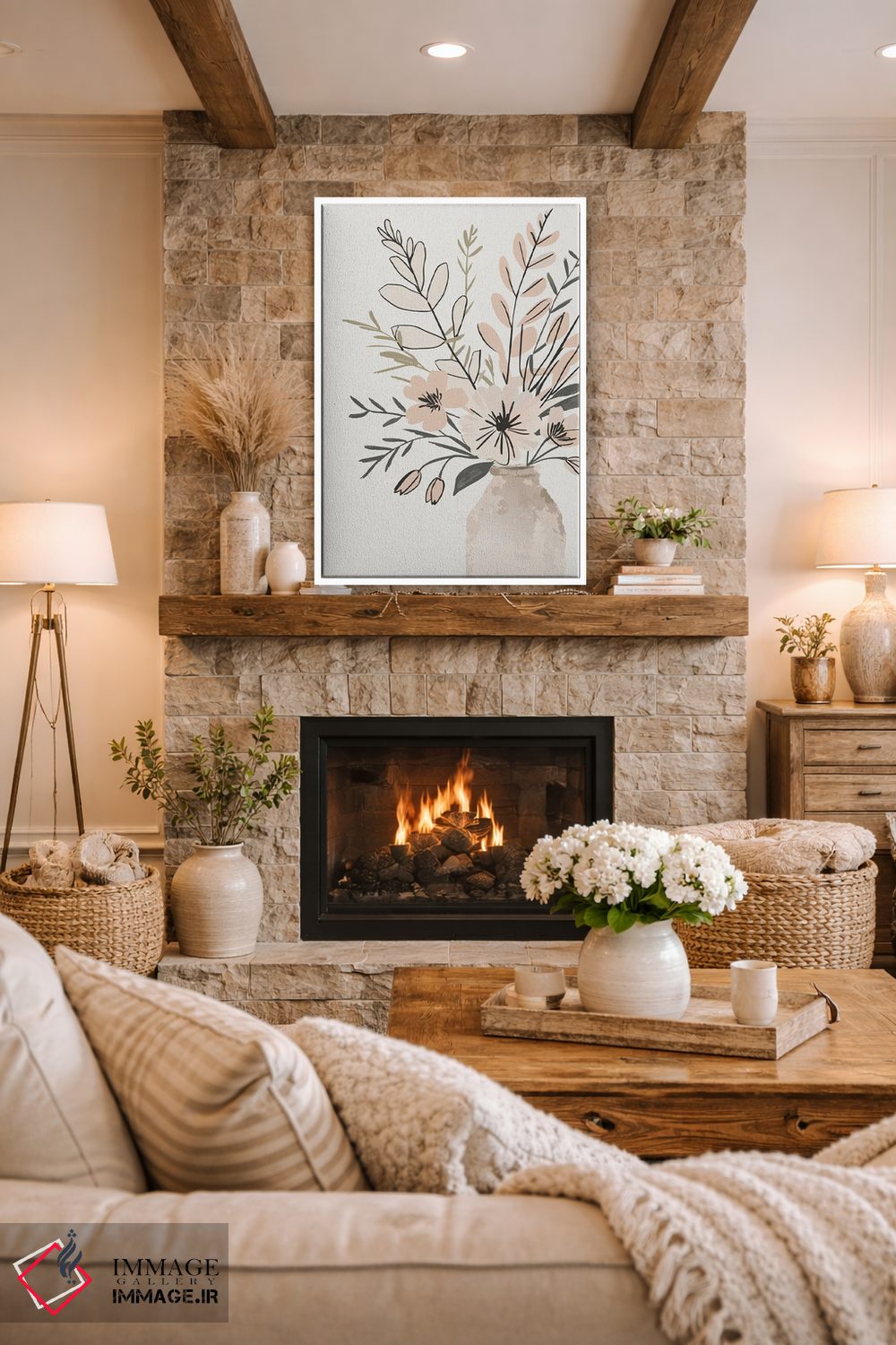 اگر میخواهید اثر برجستهتر شود، سفید را در دستهگل خشک در نظر بگیرید تا تعادل بین گرم و سرد بهتر برقرار شود. انتخاب قاب هم میتواند بهخوبی این اکسنت را تقویت کند.