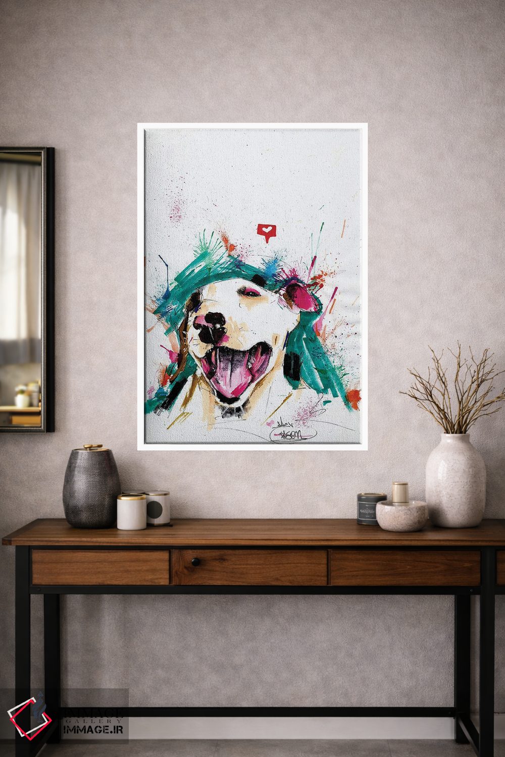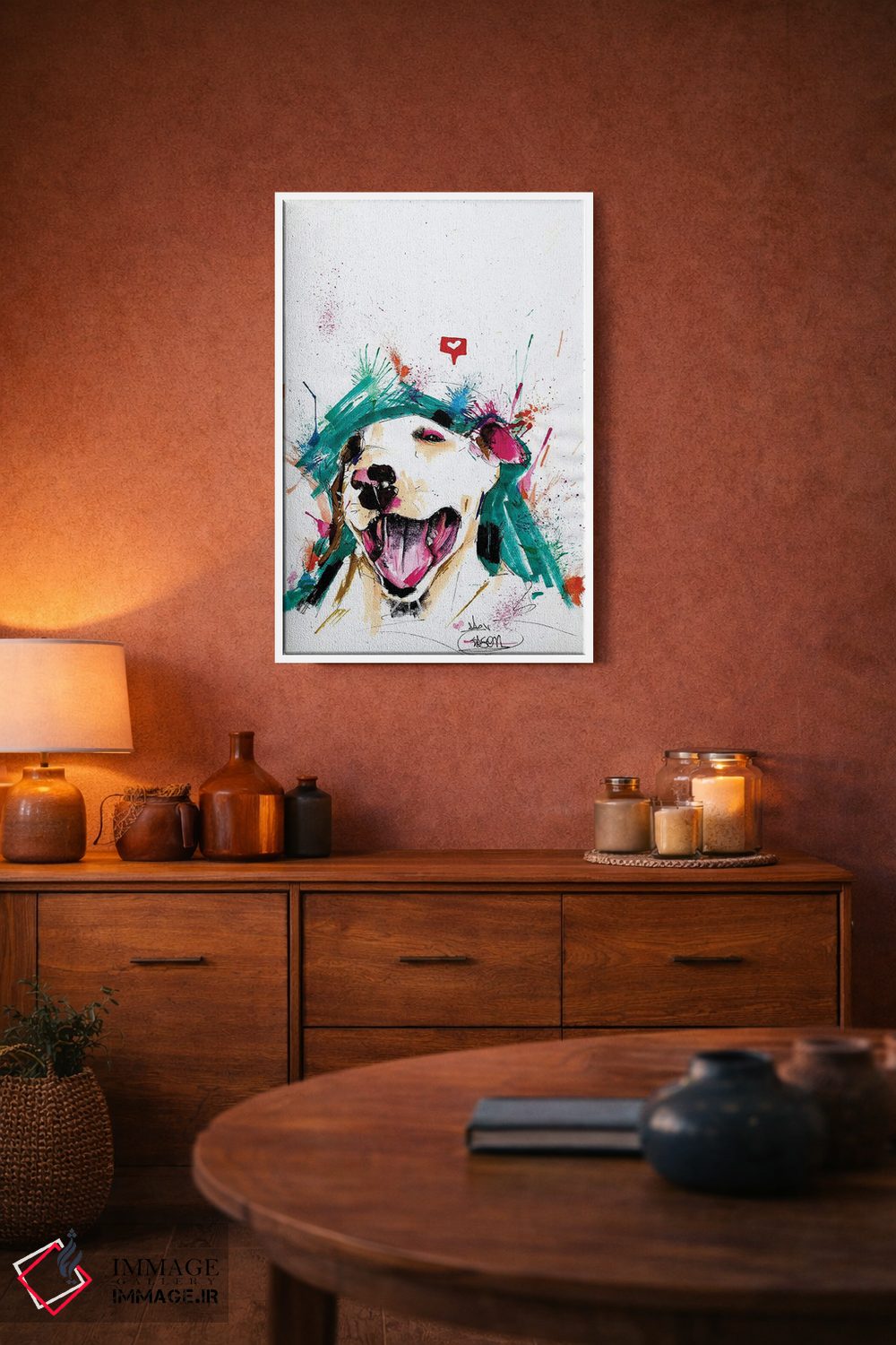 براساس پالت ترکیبی اثر، قاب تیک گرم (چوبی) پیشنهاد اول است و مشکی مات (فریم متوسط) مکمل. برای سفارشهای پروژهای با ابعاد و قابهای اختصاصی با ایماژ در تماس باشید.