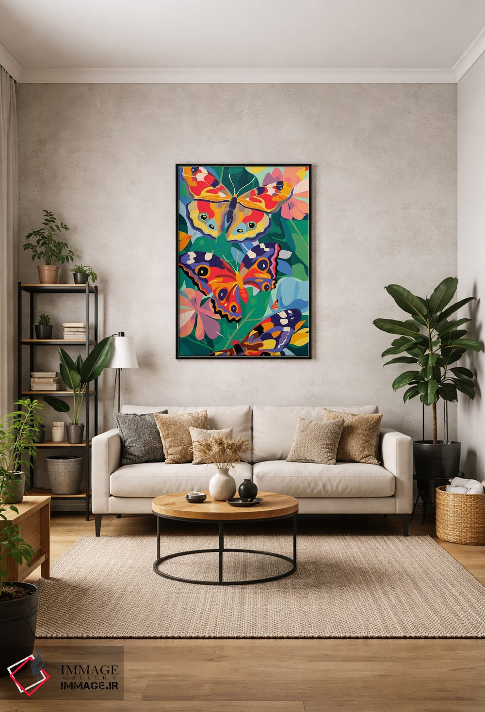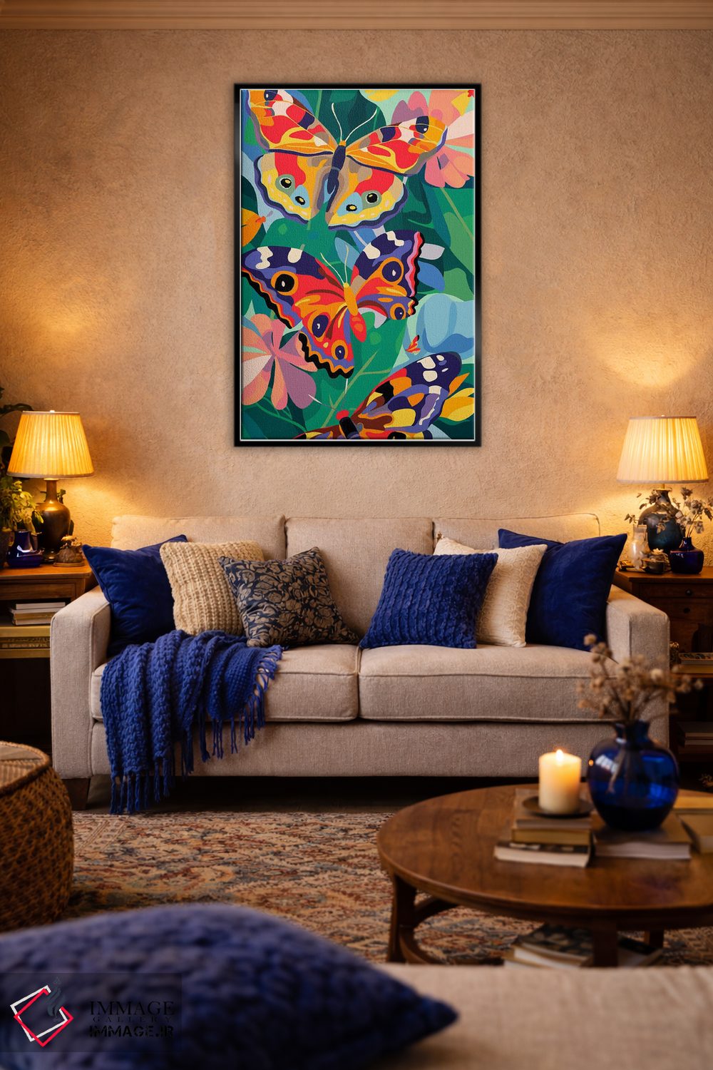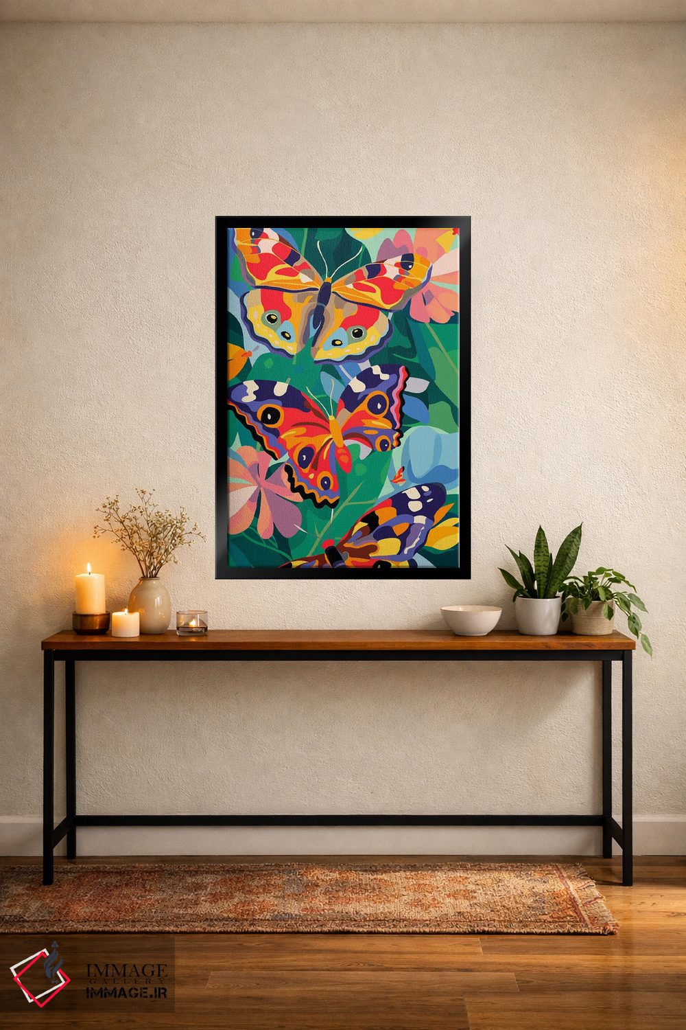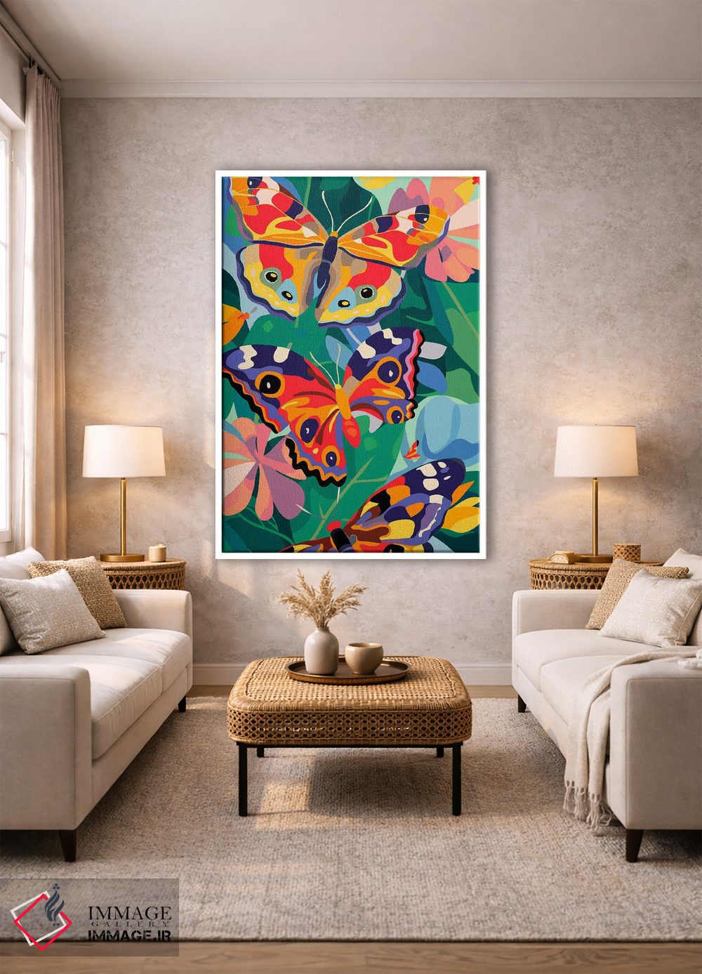 برای دیوارهای ساده، «پروانههای شاداب» اثرِ «ادسون راموس» مثل یک امضای بامزه اما متین عمل میکند؛ برای اتاق کودک (بدون لحن کودکانه) انتخابی خوشسلیقه است. با قاب چوبی یا مشکی، حس مرتبتری پیدا میکند.