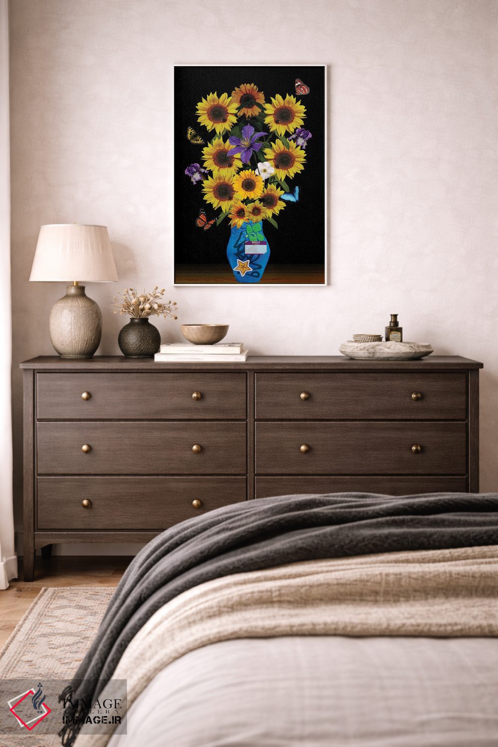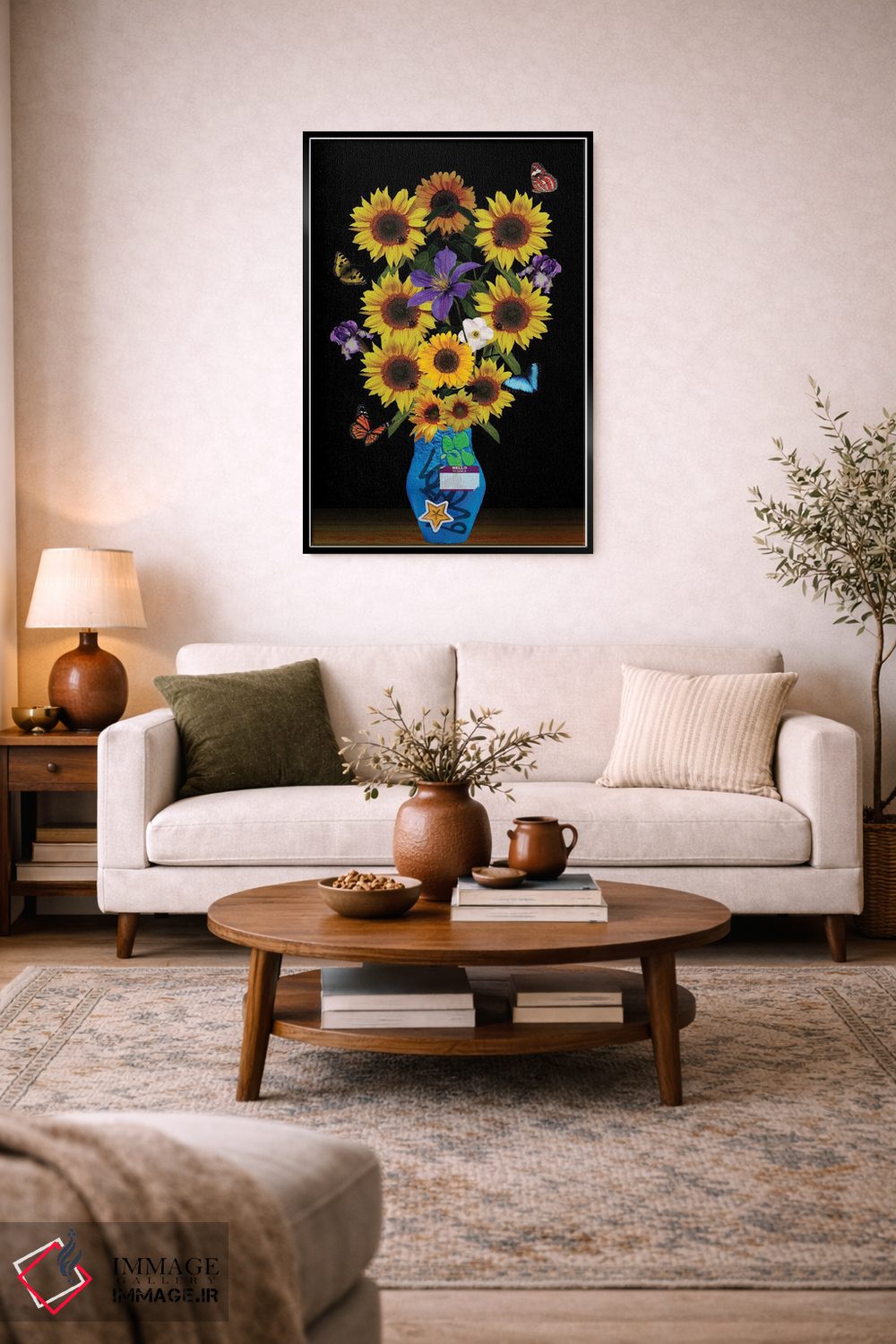 این اثر با عنوان «گلدان آفتابگردان» اثرِ «ادسون راموس» حس طراوت را بدون شلوغی وارد اتاق میکند؛ برای خانههایی با نور طبیعی انتخابی خوشسلیقه است. همیشه بهروز میماند و با فصلها خوب کنار میآید.