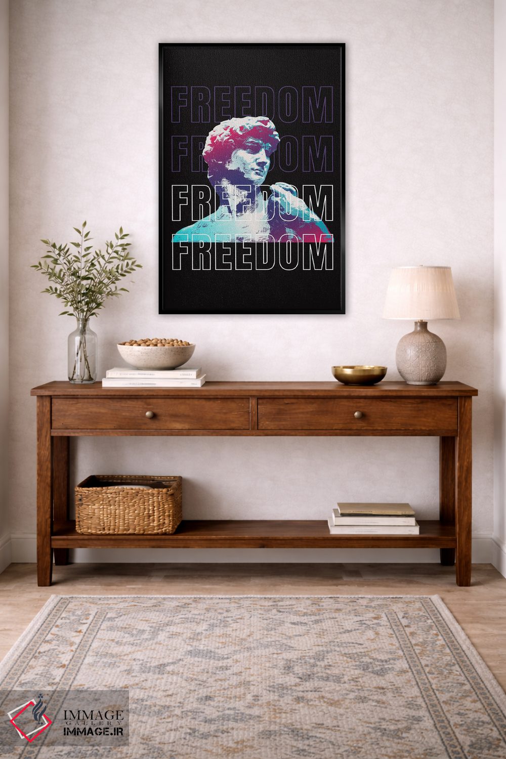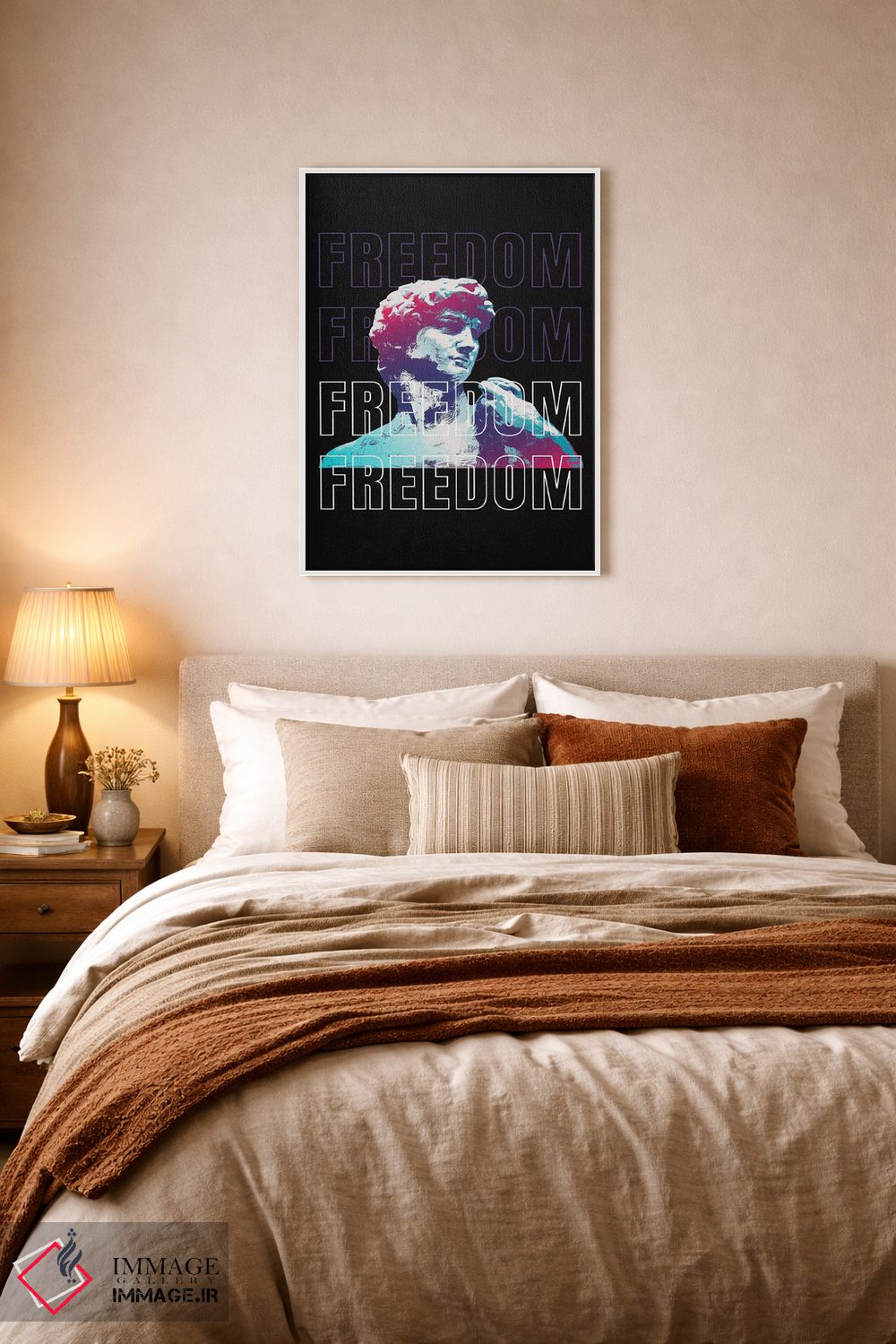 بوم گالری ایماژ نسخهی چیدماناتیوِ باکیفیت از یک اثر هنری است؛ روی کنواس سفیدِ یکدست و بدون اسید با اجرای چاپ هنری جیکلی (Giclée) برای آرتپرینتهای جدی با جوهرهای آرشیویِ حرفهای برای لایههای رنگی خواناتر، رنگها روی دیوار متعادلتر و سایهها جزئیتر دیده میشوند.