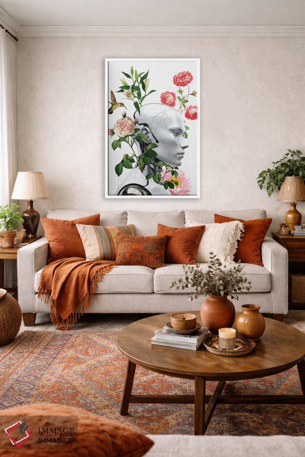 بوم گالری ایماژ طوری طراحی شده که اثر روی دیوار «پرداختشده» و حرفهای دیده شود—نه پرزرقوبرقِ بیپایه؛ بلکه دقیق و خوشپرداخت. بافت ظریف کنواس باعث میشود حس اثر هنری را در نگاه نزدیک نگه میدارد و همین «پرداخت» تفاوت را میسازد. در کنترل تونها، تعادل بهتری بین نور و رنگ ایجاد میکند. حاصل کار، یک تابلو خوشنشین است که هم از دور اثرگذار است و هم از نزدیک خوشخوان؛ برای هدیهی هنری هم انتخاب محترمانهای است.