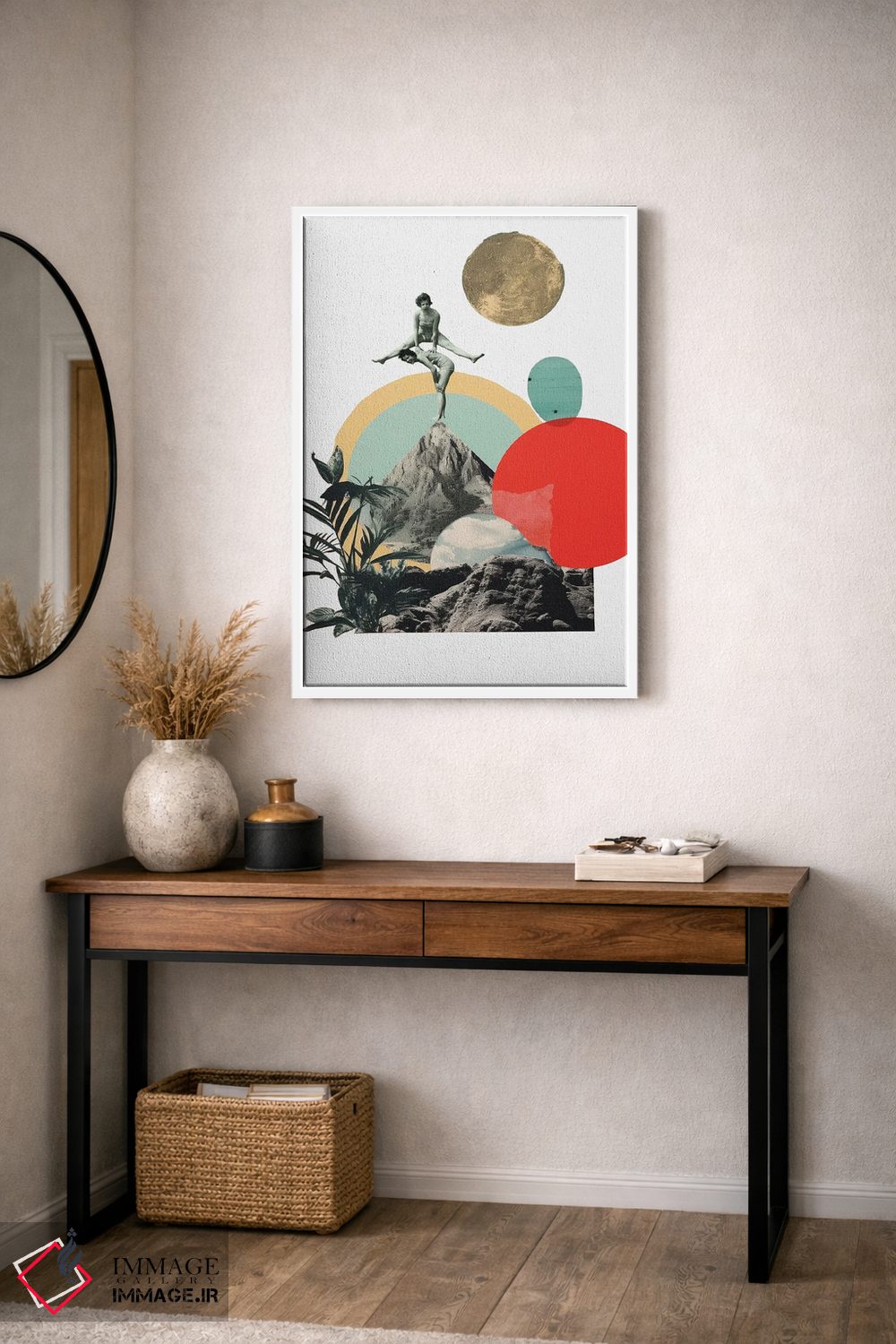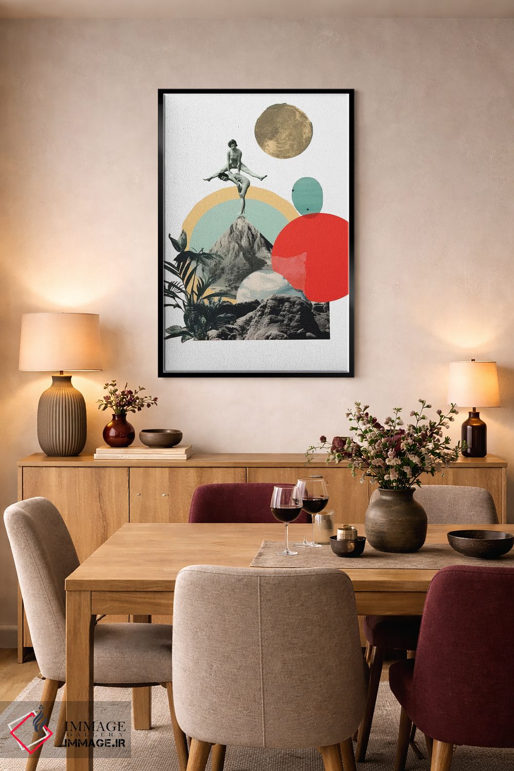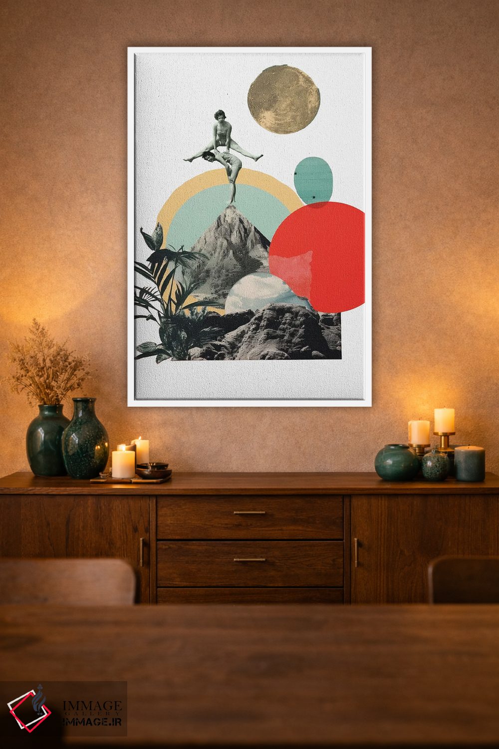 براساس پالت گرم اثر، قاب تیک گرم (چوبی) پیشنهاد اول است و مشکی مات (فریم متوسط) مکمل. برای سفارشهای پروژهای با ابعاد و قابهای اختصاصی با ایماژ در تماس باشید.