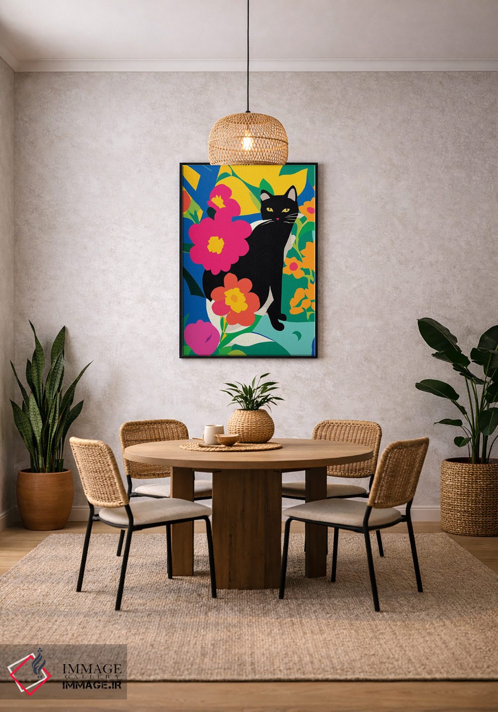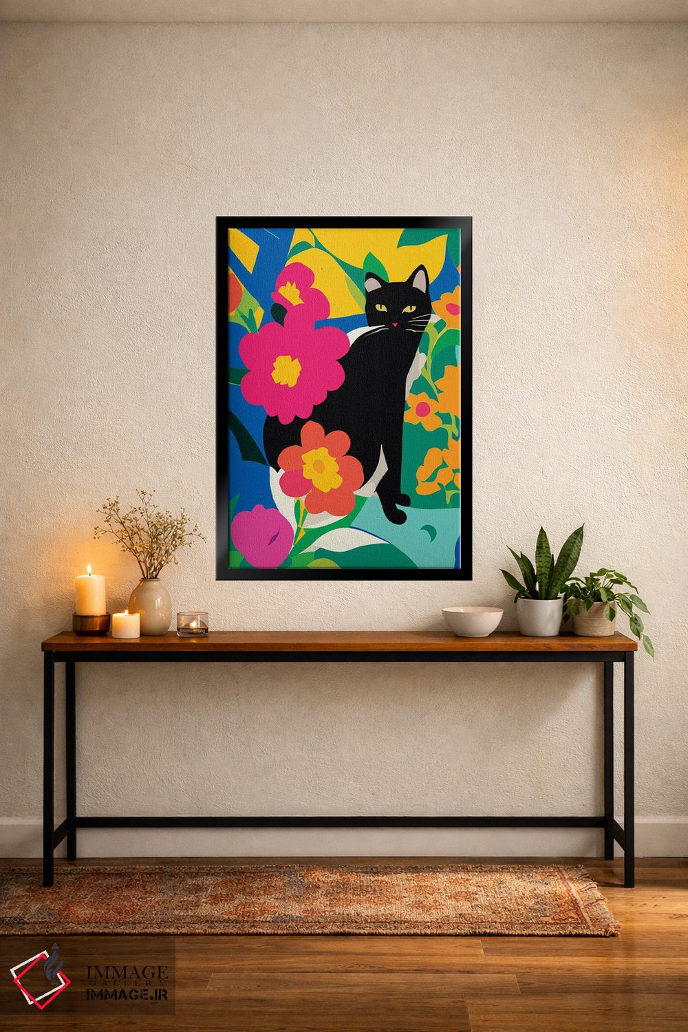 این اثر با عنوان «گربه و گلها» اثرِ «ادسون راموس» یک لبخند ریز به چیدمان میدهد؛ برای هدیهدادن به دوستداران حیوانات انتخابی خوشسلیقه است. با قاب چوبی یا مشکی، حس مرتبتری پیدا میکند.