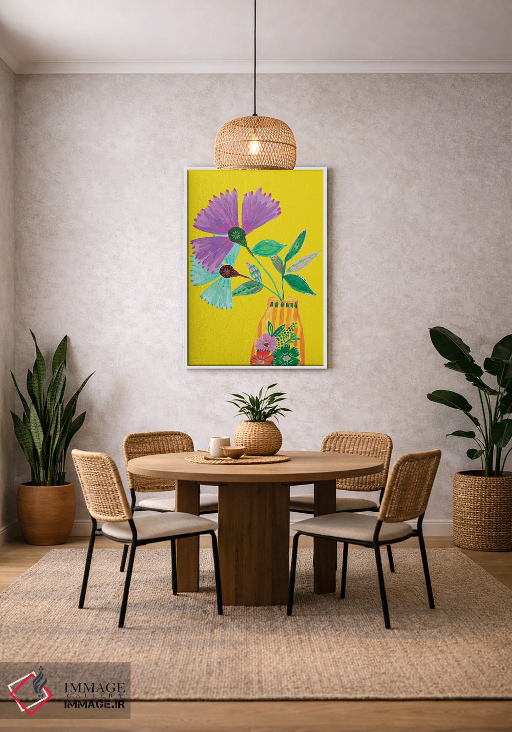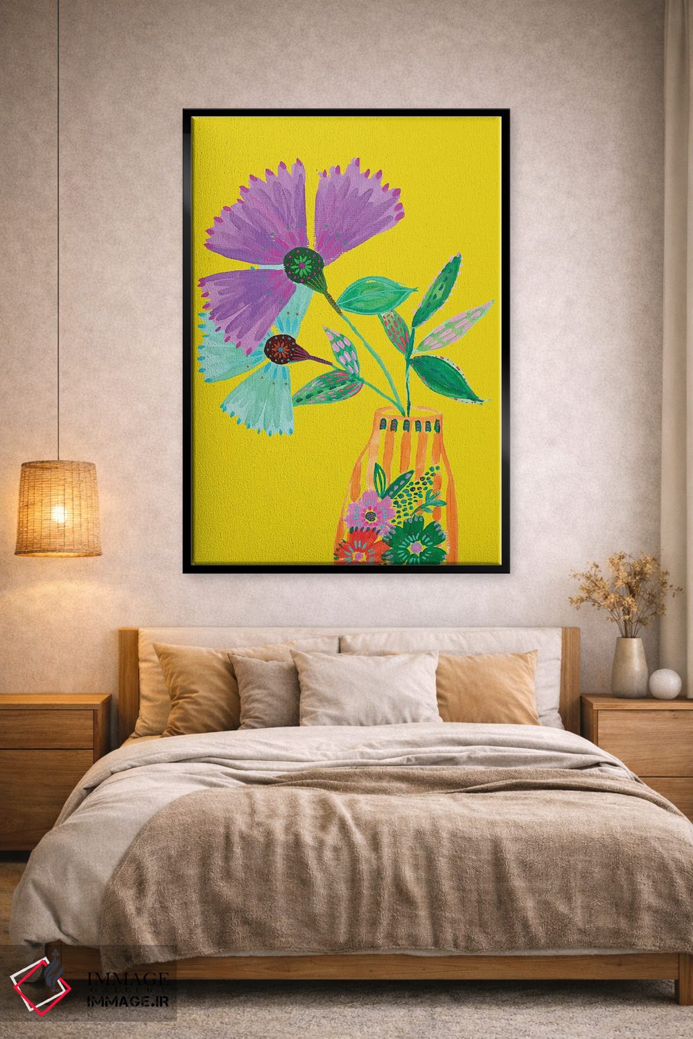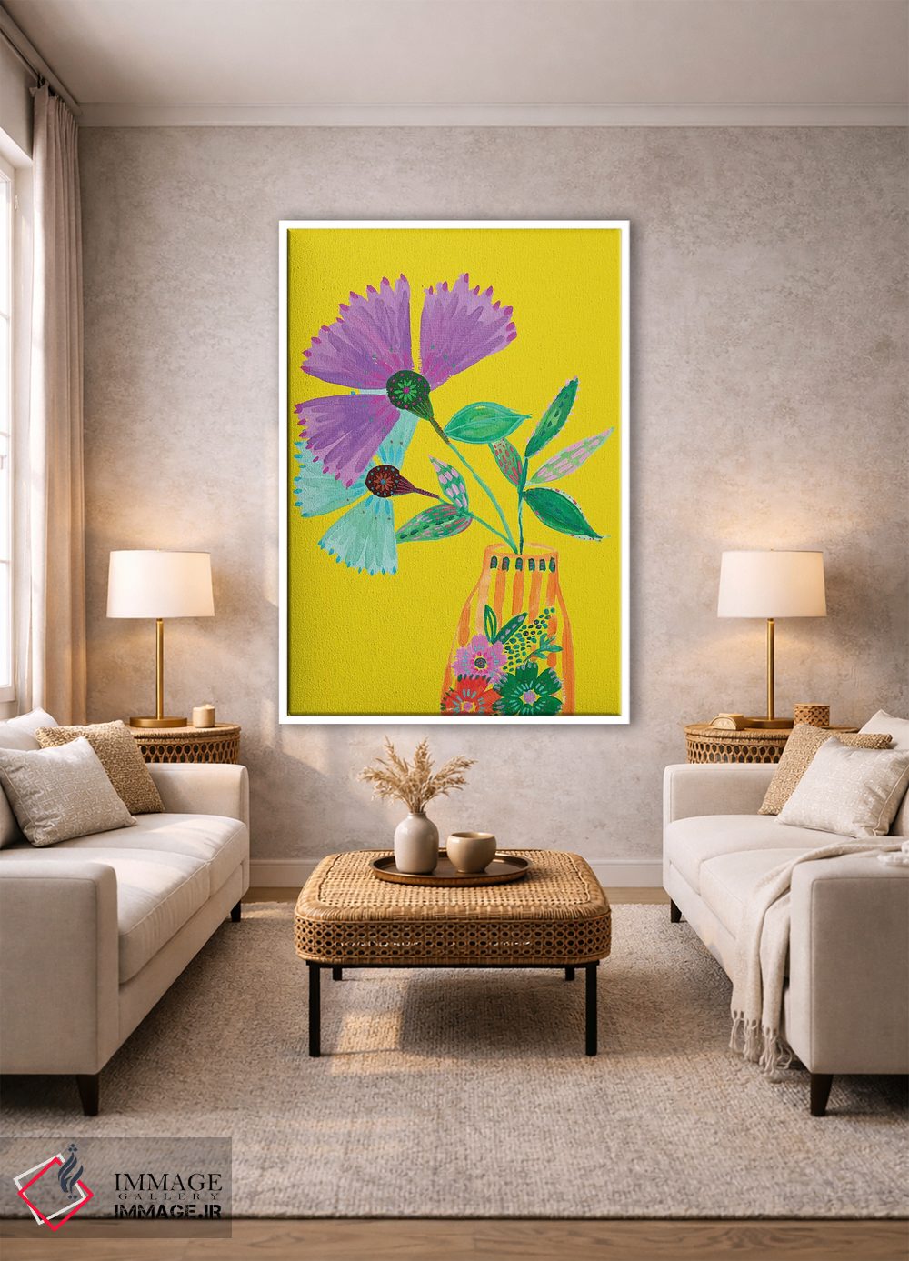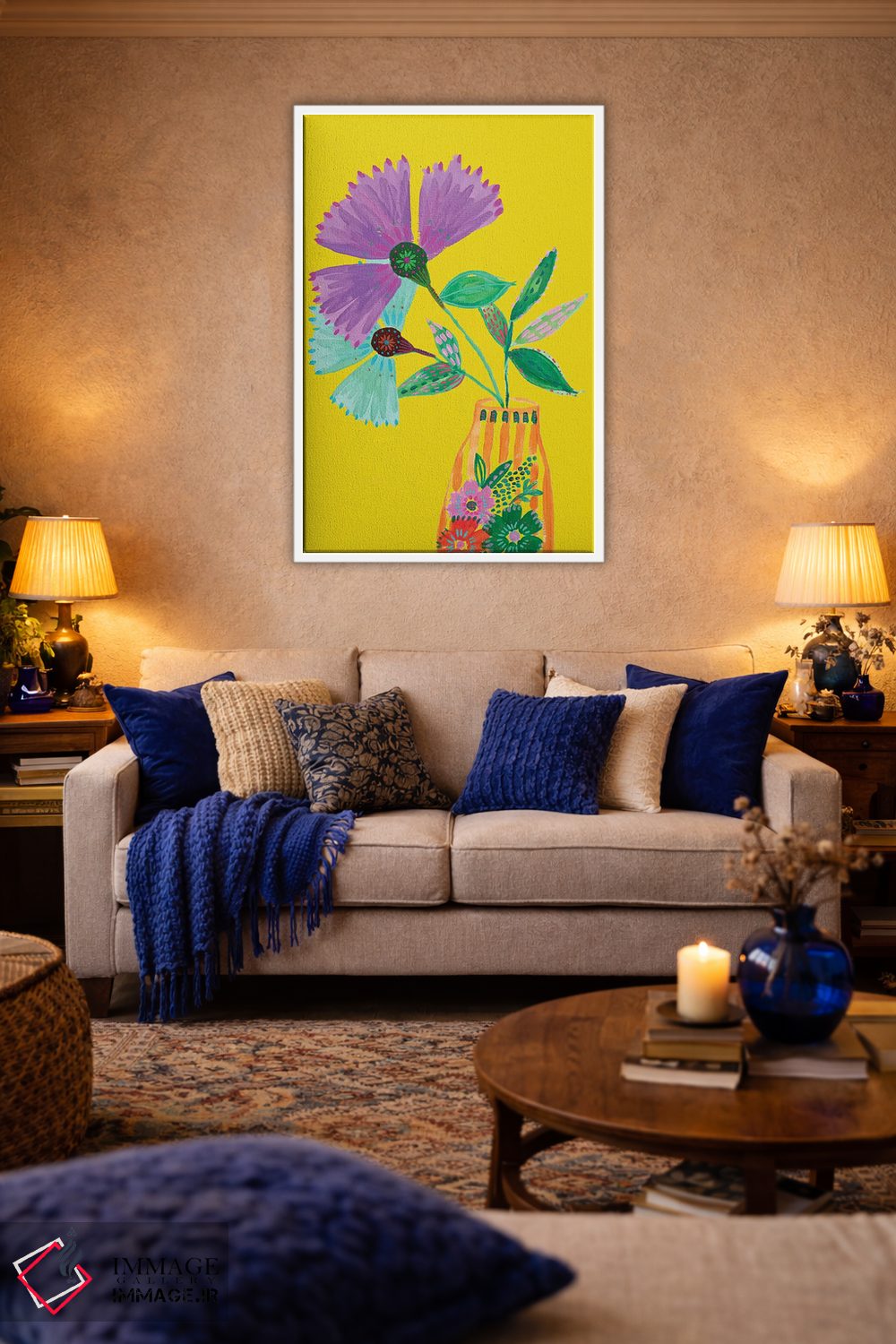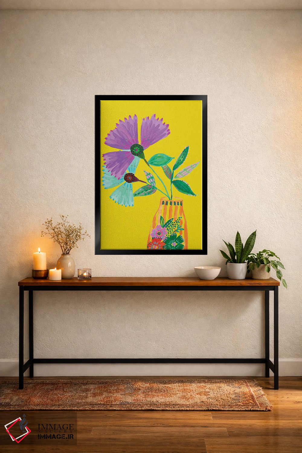 این اثر با عنوان «گلهای سبک بوهمی II» اثرِ «اتاوی (برند هنری)» فضا را نرمتر و مهماننوازتر میکند؛ برای فضاهای بوهمی انتخابی خوشسلیقه است. حضورش آرام است، اما بیاثر نیست.