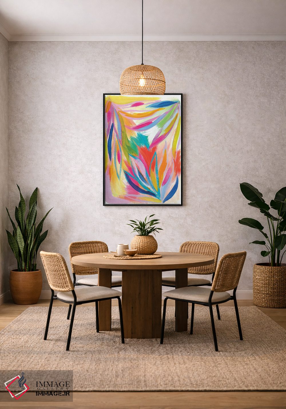 بوم گالری ایماژ طوری طراحی شده که اثر روی دیوار «پرداختشده» و حرفهای دیده شود—نه پرزرقوبرقِ بیپایه؛ بلکه دقیق و خوشپرداخت. با بافت ظریف کنواس، حس اثر هنری را در نگاه نزدیک نگه میدارد بدون اغراق؛ فقط دقیقتر. با قابپذیری، میتواند اثر را نقطهٔ کانونی فضا کند و در دکورهای مدرن و مینیمال خیلی خوب مینشیند. حاصل کار، یک تابلو خوشنشین است که هم از دور اثرگذار است و هم از نزدیک خوشخوان؛ برای هدیهی هنری هم انتخاب محترمانهای است. در کنار چوب و متریالهای طبیعی، بافت کنواس دلنشینتر دیده میشود.