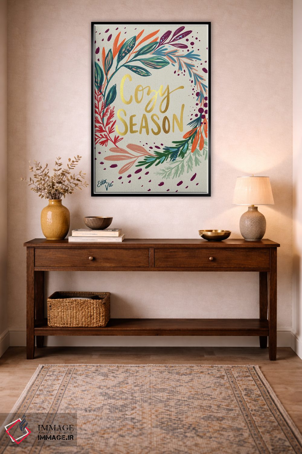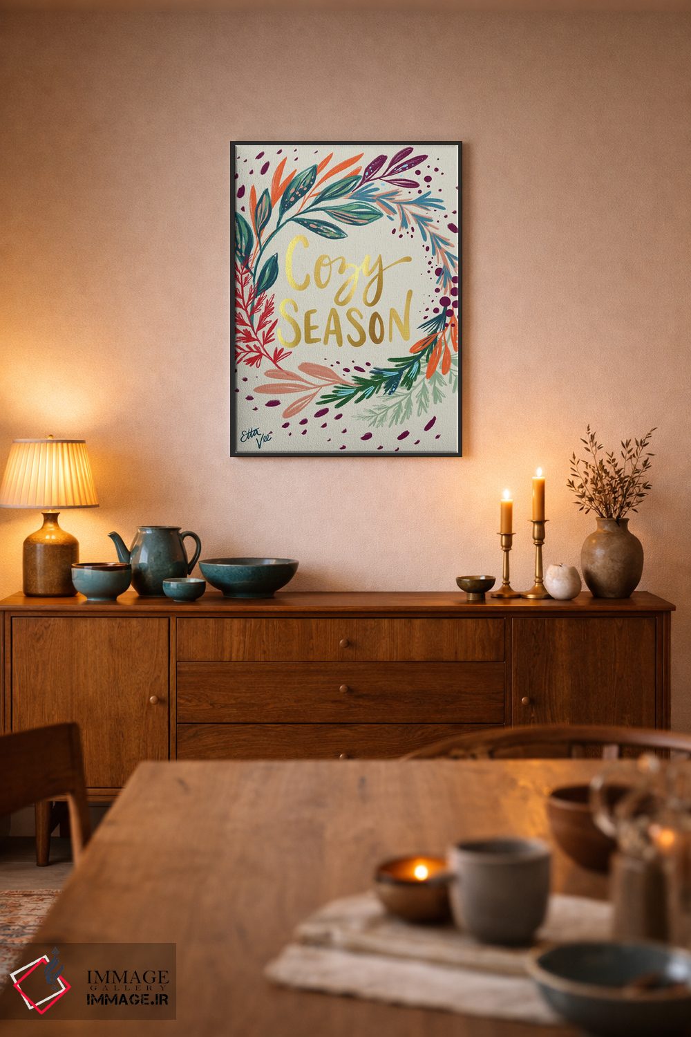 براساس پالت ترکیبی اثر، قاب تیک گرم (چوبی) پیشنهاد اول است و مشکی مات (فریم متوسط) مکمل. برای سفارشهای پروژهای با ابعاد و قابهای اختصاصی با ایماژ در تماس باشید.