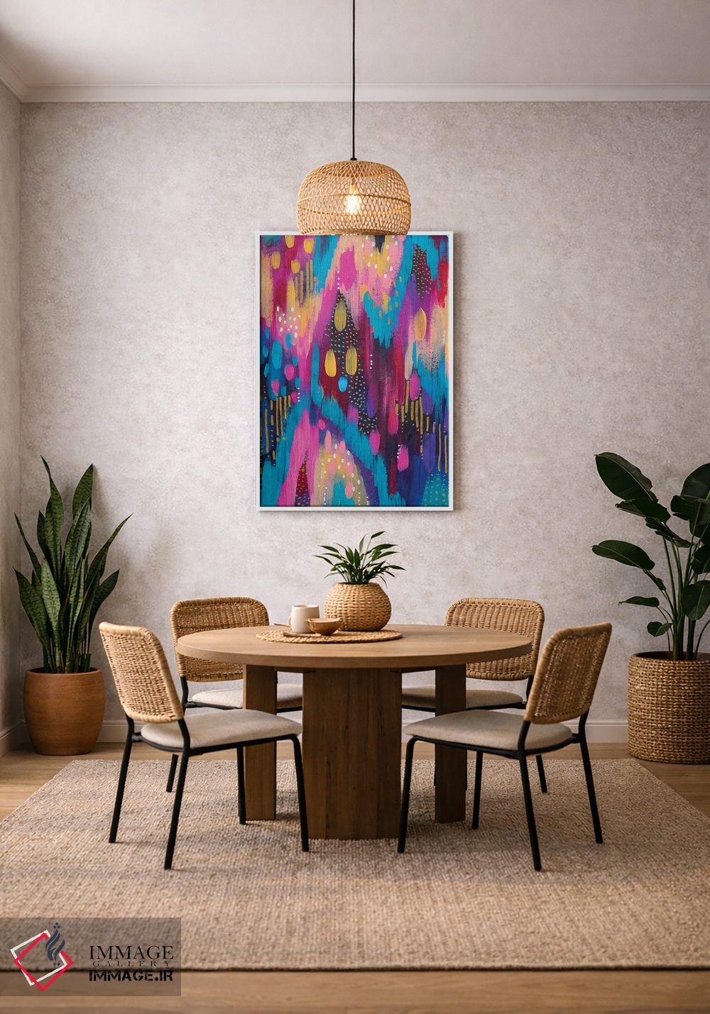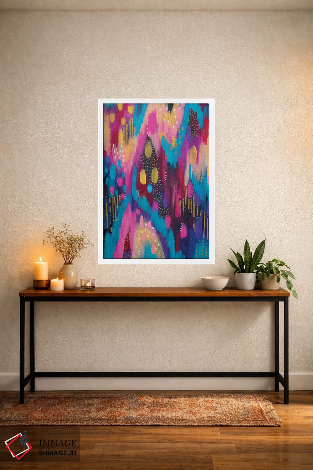 ساختار بوم گالری ایماژ طوری است که اثر روی دیوار «پرداختشده» و حرفهای دیده شود—نه پرزرقوبرقِ بیپایه؛ بلکه دقیق و خوشپرداخت. با بافت ظریف کنواس، حس اثر هنری را در نگاه نزدیک نگه میدارد و در دکورهای مدرن و کمینهگرا خیلی خوب مینشیند. در کنترل تونها، از تند شدن ناخواستهی رنگها جلوگیری میکند و در دکورهای مدرن و مینیمال خیلی خوب مینشیند. برای سفارش اندازه یا قاب متفاوت، تیم ایماژ راهنمایی میکند تا انتخاب نهایی هماهنگتر باشد؛ در محیطهای کاری، این نظم بصری خیلی به چشم میآید.