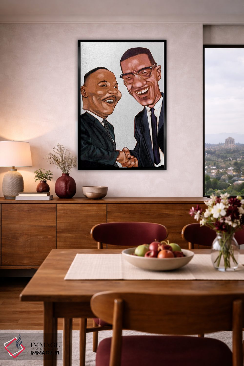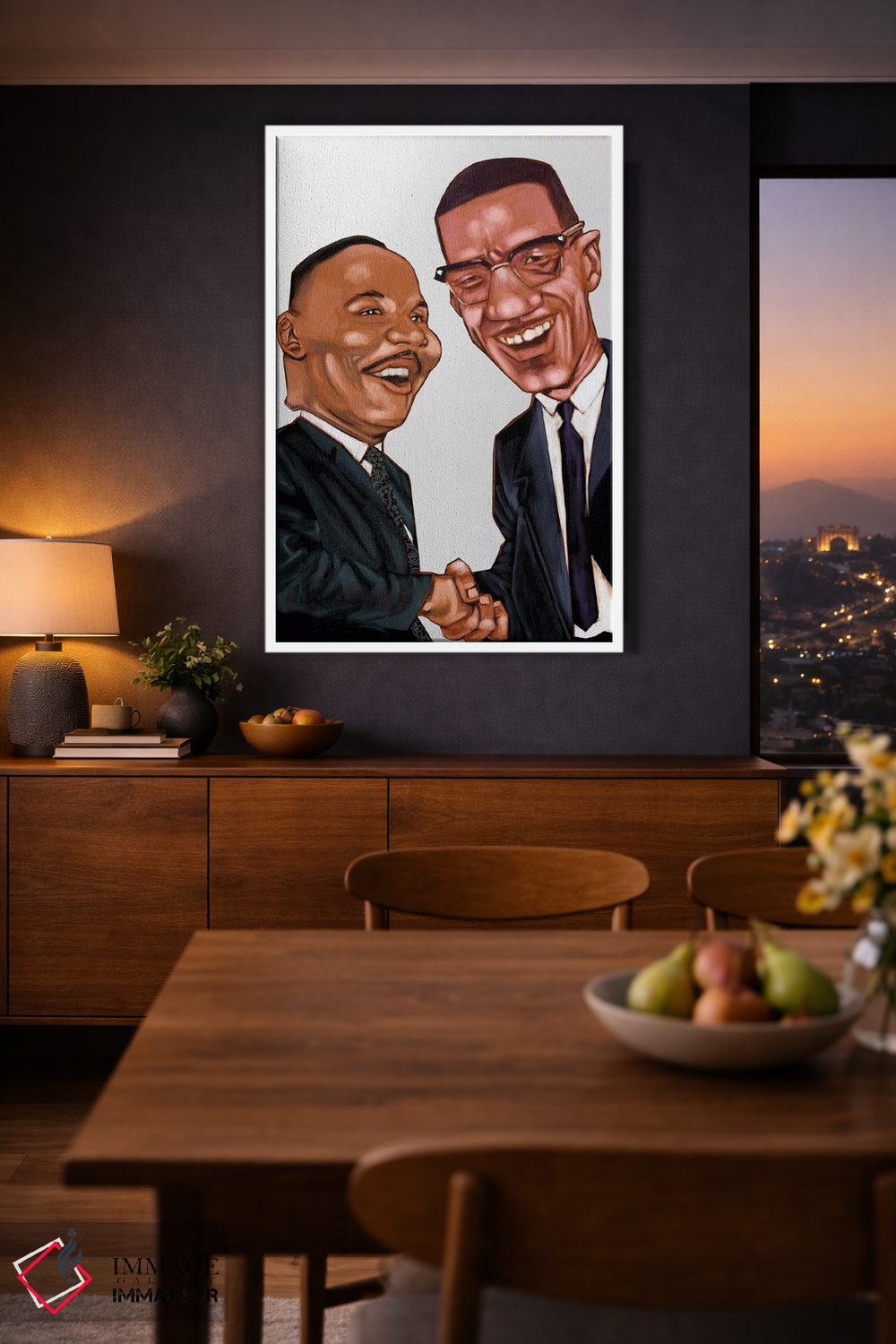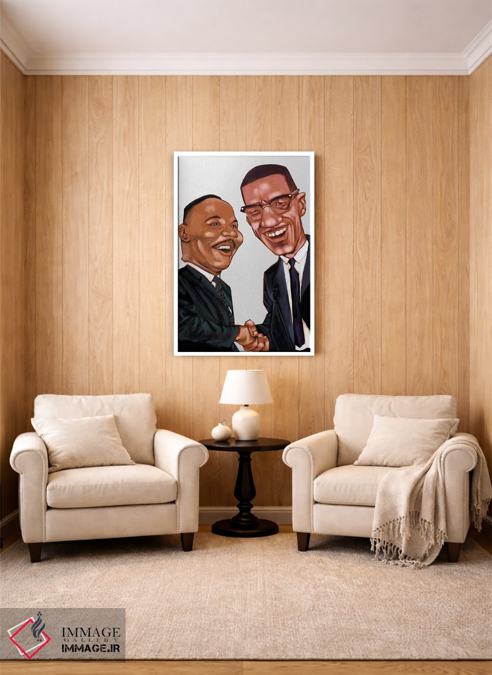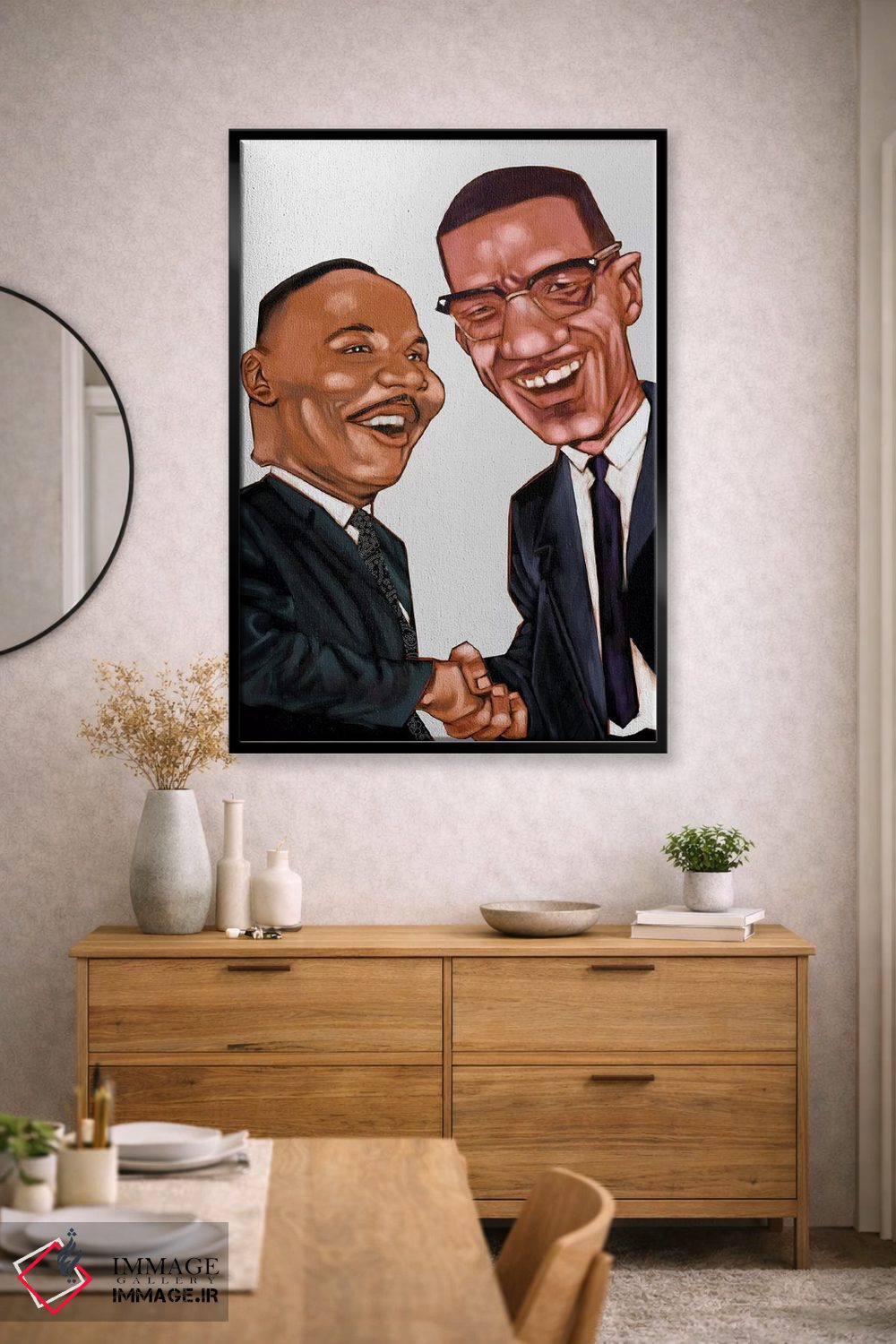 «امالکی و ایکس (مارتین لوتر کینگ و مالکوم ایکس)» اثرِ «ایوان ویلیامز» با حالوهوای هنری، از آن انتخابهایی است که به دیوار شخصیت میدهد و گفتگو راه میاندازد.