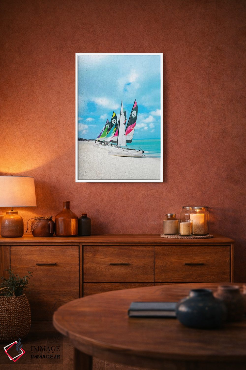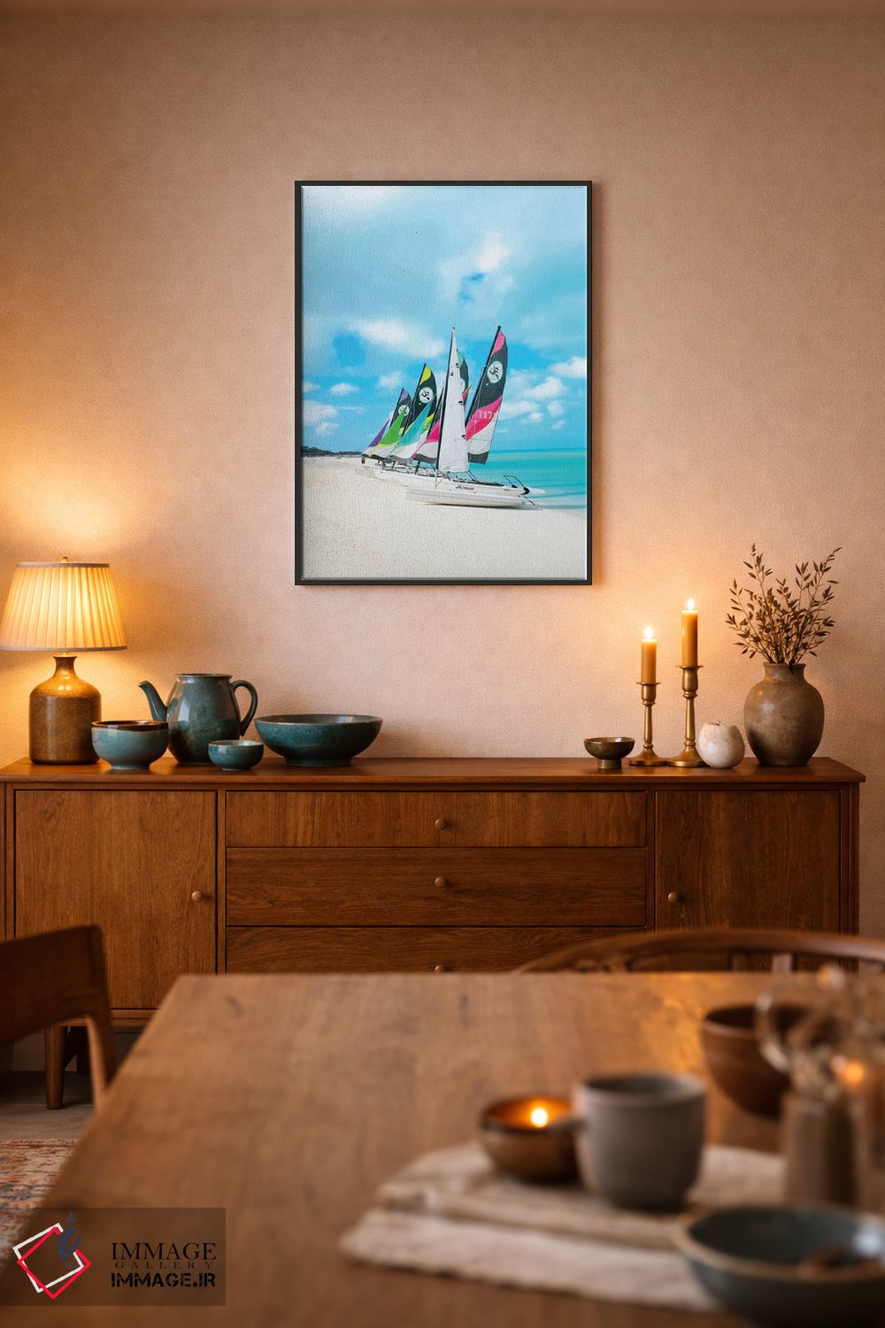تابلو دکوراتیو قایق های رنگارنگ اثر ارین سامر - نمای روبه‌رو روی دیوار