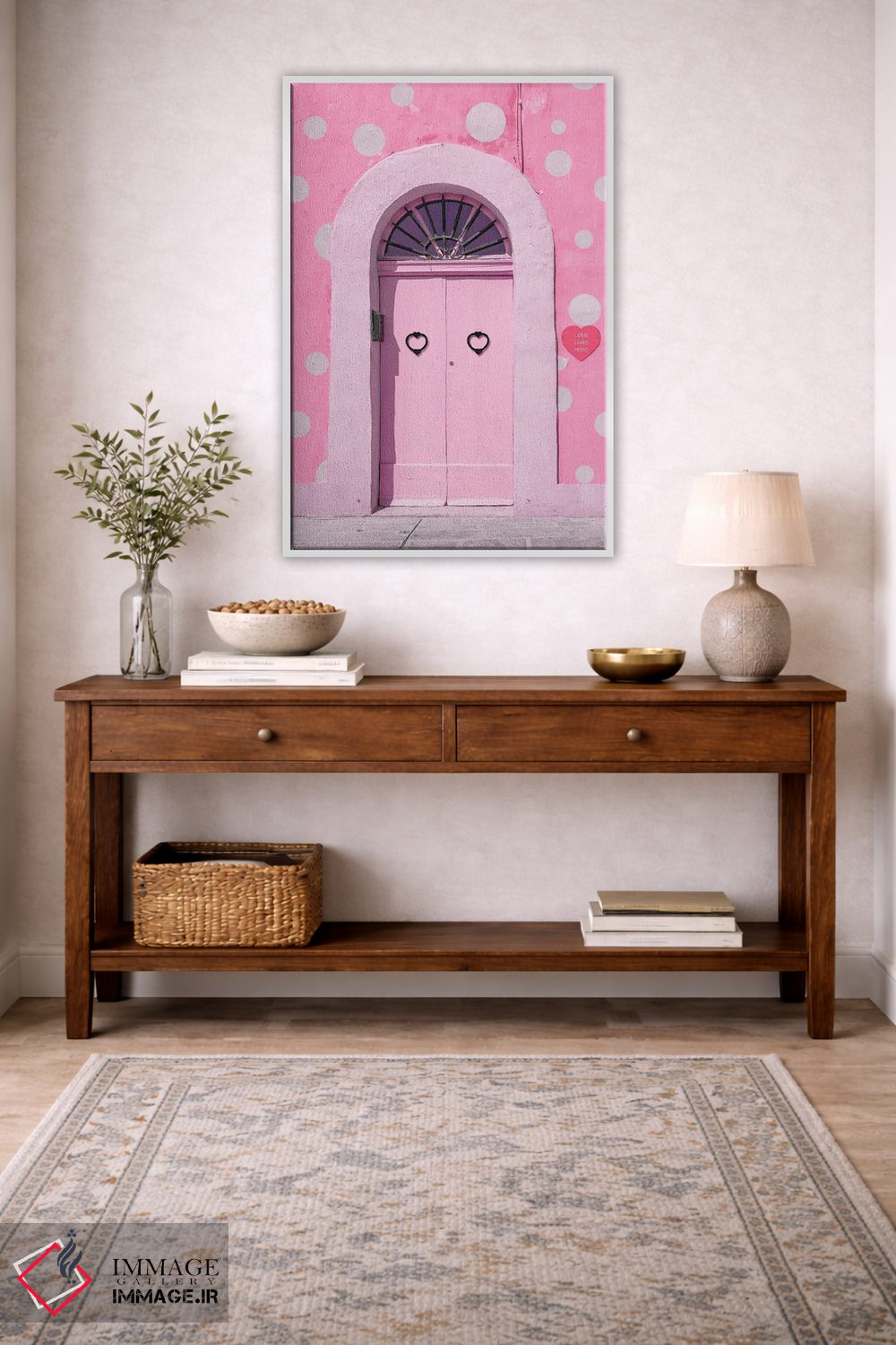 صورتی میتواند یک اکسنتِ کوچک اما موثر باشد؛ گلدان یا آباژور را با صورتی در نظر بگیرید تا ترکیببندی قویتر شود. انتخاب قاب هم میتواند این اکسنت را تقویت کند.