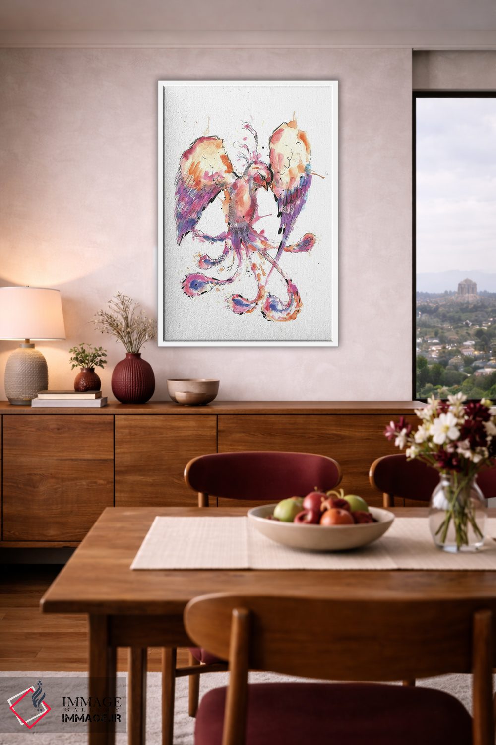 اگر میخواهید فضا «بهروز» به نظر برسد، «ققنوس آبرنگی» اثرِ «ادسون راموس» با موضوعِ این اثر و سبک هنری انتخاب خوبی است.