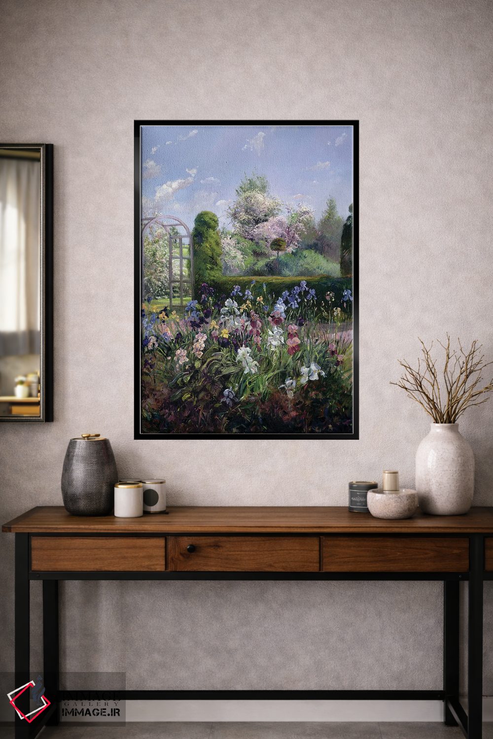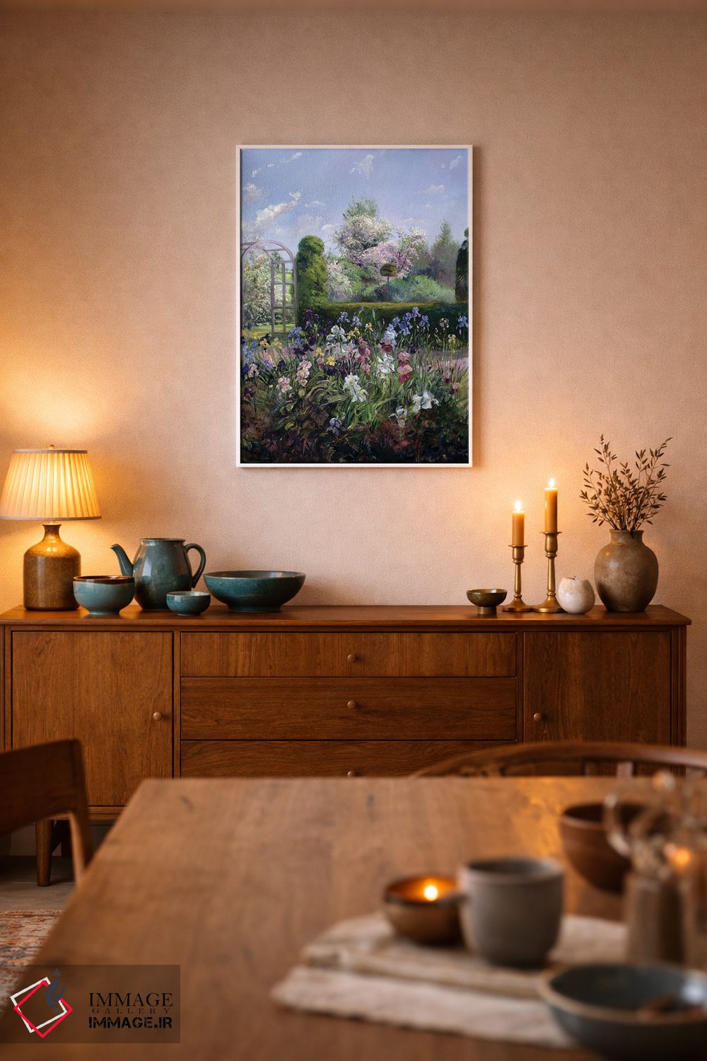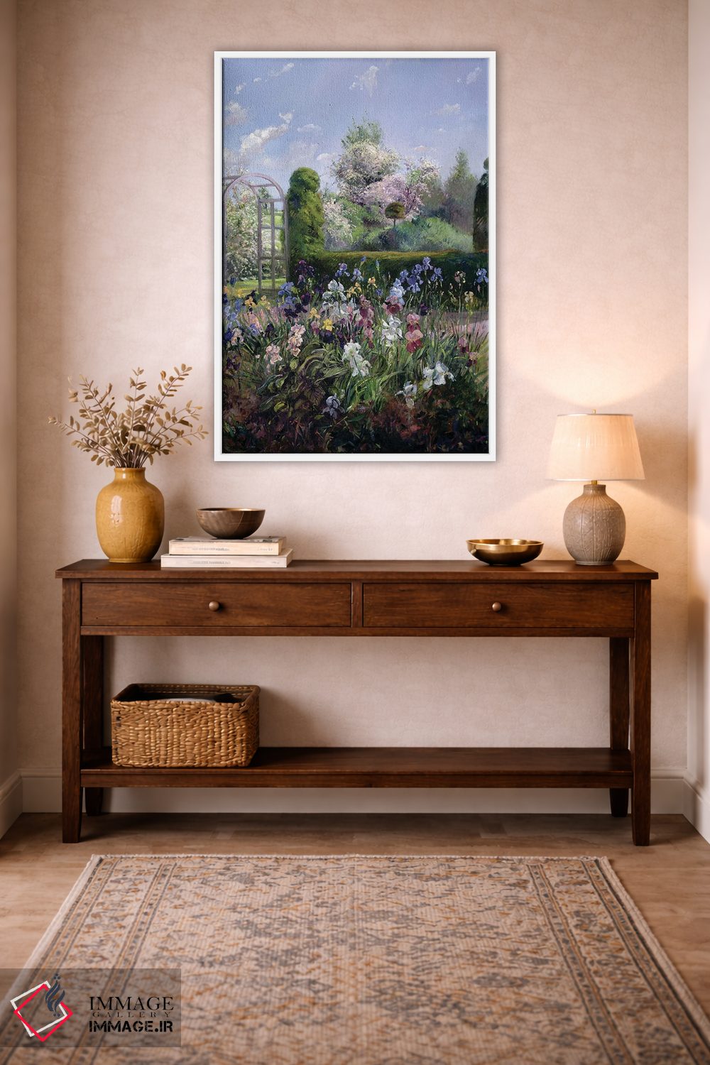 «زنبقها در باغ رسمی، ۱۹۹۳» اثرِ «تیموتی ایستون» مثل یک نفس تازه است؛ در کنار چوب و پارچههای روشن، عالی مینشیند؛ برای اتاق خواب انتخابی خوشسلیقه است. جزئیاتش از نزدیک هم ارزش تماشا دارد.