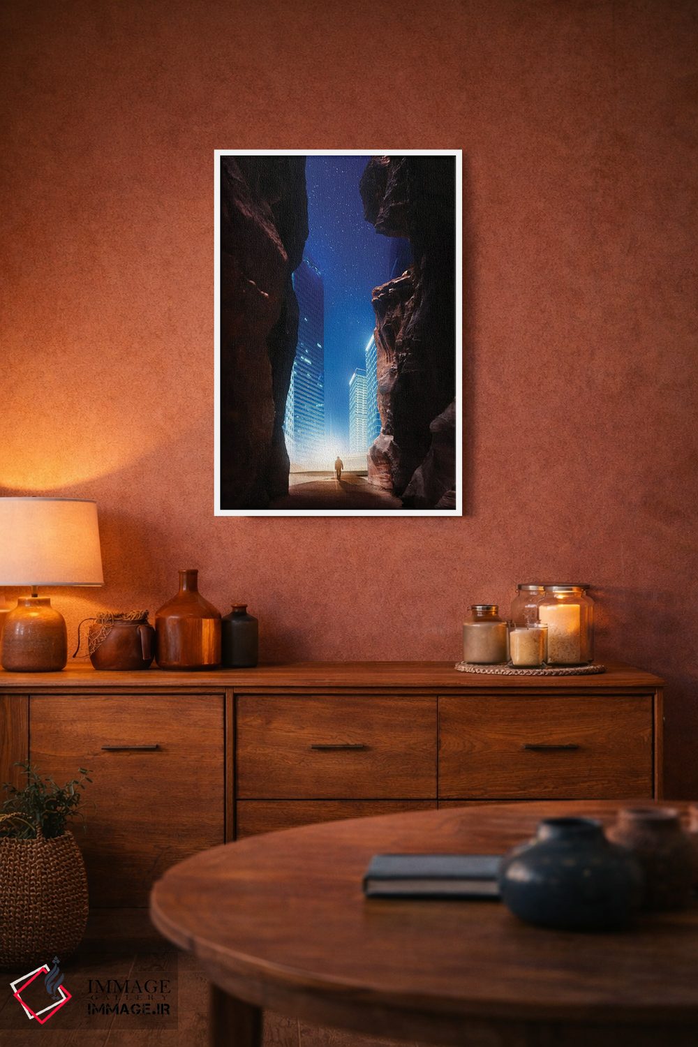 اگر دیوارِ خالیِ بالای کنسول یا فضای غذاخوری را میخواهی جمعوجور و شیک کنی، «دروازه» اثرِ «اوگنی سولویف» با تمِ این اثر انتخاب خوبی است.