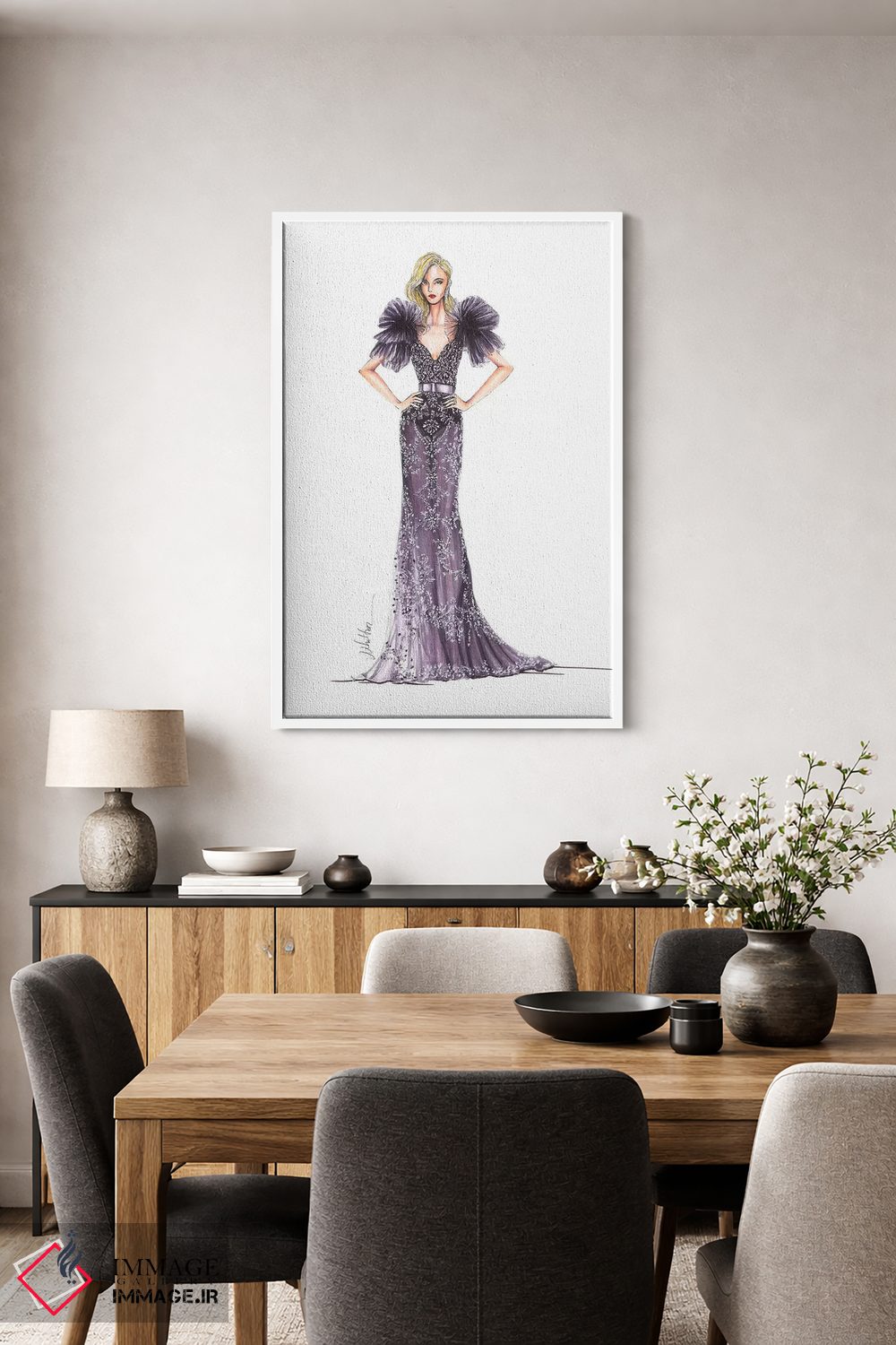 ساختار بوم گالری ایماژ طوری است که اثر روی دیوار «پرداختشده» و حرفهای دیده شود—نه پرزرقوبرقِ بیپایه؛ بلکه دقیق و خوشپرداخت. بافت ظریف کنواس باعث میشود حس اثر هنری را در نگاه نزدیک نگه میدارد. ارائهی آماده نصب باعث میشود برای یک ارائهی حرفهای ضروری است بدون اغراق؛ فقط دقیقتر. حاصل کار، یک تابلو خوشنشین است که هم از دور اثرگذار است و هم از نزدیک خوشخوان؛ اگر محیط کمینهگرا است، همین پرداخت تمیز کافی است.