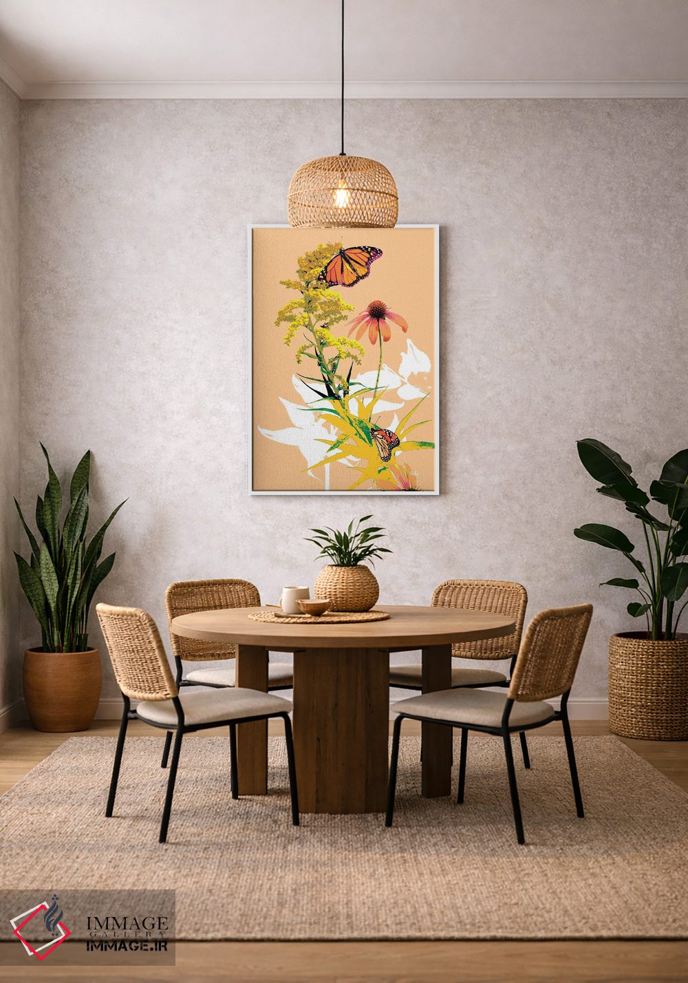 «پروانههای شهریار بر روی شاخه طلایی I» اثرِ «اولیا دیزاینز (استودیو طراحی)» از آن کارهاییست که حس طبیعت را بیدغدغه وارد خانه میکند؛ برای فضاهای روستیک یا بوهو انتخاب خوبیست. اگر دنبال اثر دوستداشتنیِ «بیغلو» هستید، این یکی دقیق مینشیند.