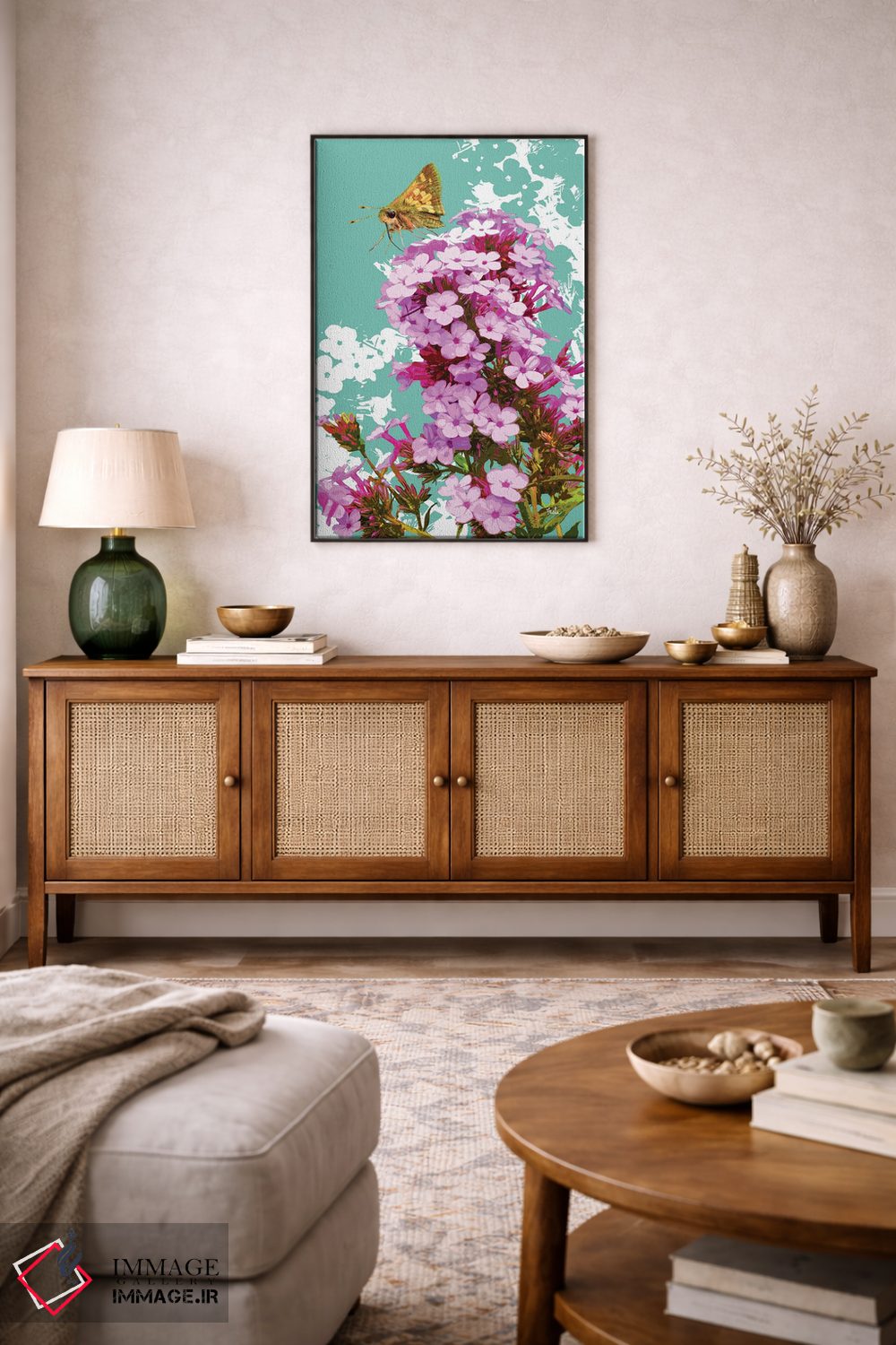 تابلو دکوراتیو پروانه اسکیپر روی گل فلوکس اثر اولیا دیزاینز