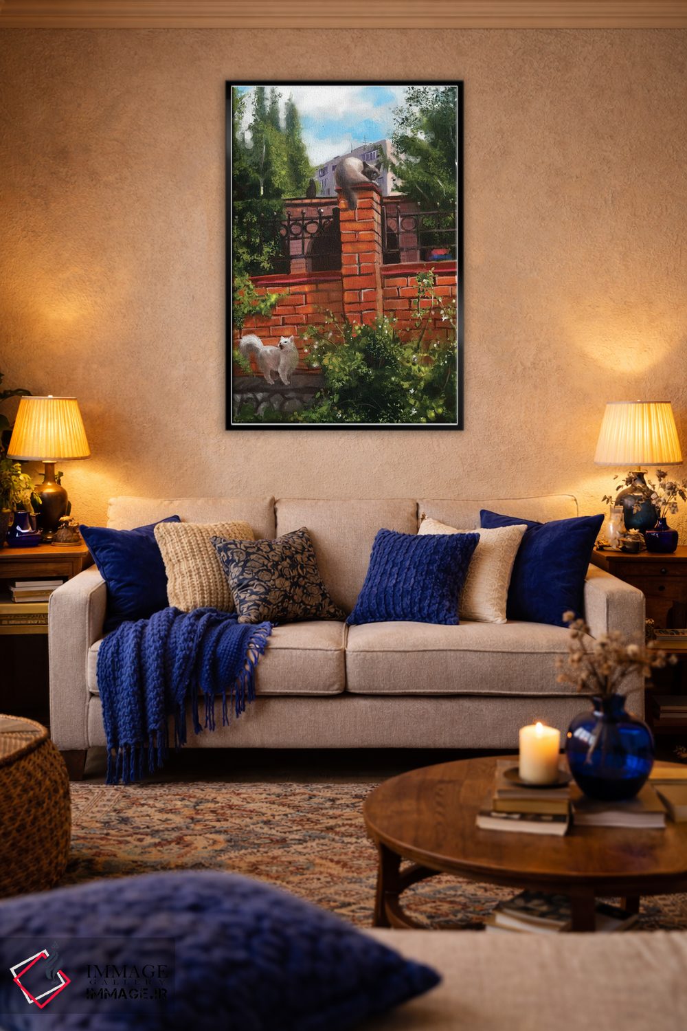 این اثر با عنوان «گربههای خیابانی» اثرِ «آناستازیا اِوگرافوا» به فضا، گرمیِ ملایم اضافه میکند؛ برای فضاهای روستیک یا بوهو انتخابی خوشسلیقه است. اگر دنبال اثر دوستداشتنیِ «بیغلو» هستید، این یکی دقیق مینشیند.