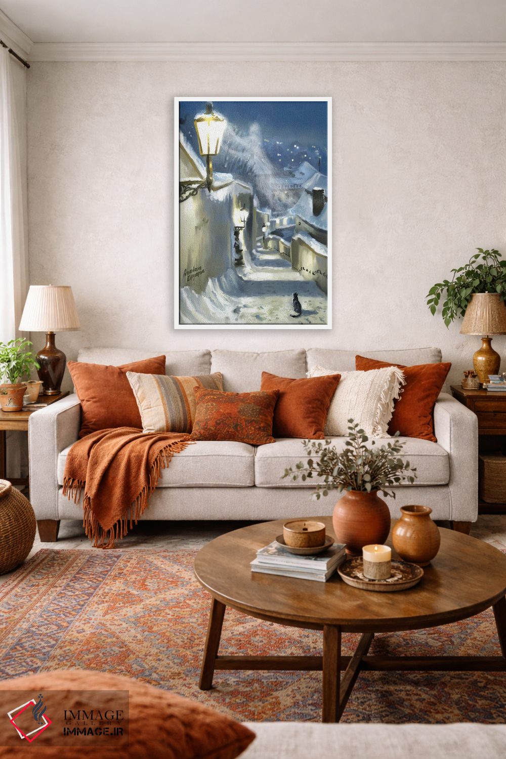 بوم گالری ایماژ طوری طراحی شده که اثر روی دیوار «پرداختشده» و حرفهای دیده شود—نه پرزرقوبرقِ بیپایه؛ بلکه دقیق و خوشپرداخت. با بافت ظریف کنواس، حس اثر هنری را در نگاه نزدیک نگه میدارد و نتیجه را یکدستتر میکند. چاپ جیکلی (Giclée) باعث میشود گذارهای رنگی را نرمتر میکند و نتیجه را یکدستتر میکند. در نهایت، نتیجه چیزی شبیه تفاوت نسخهی معمولی با نسخهی باکیفیتتر است: نه رنگِ بیشتر، بلکه پرداخت بهتر؛ اگر فضا مینیمال است، همین پرداخت تمیز کافی است.
