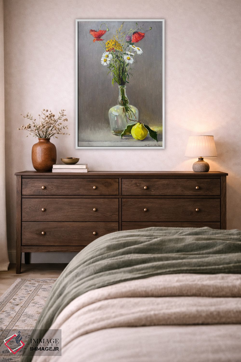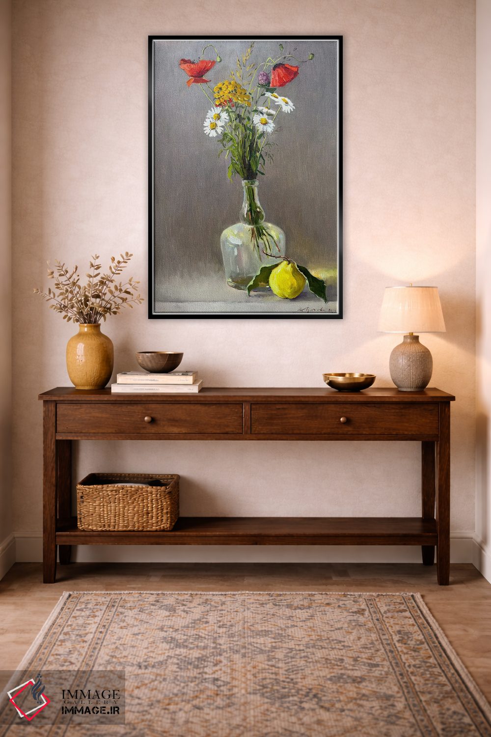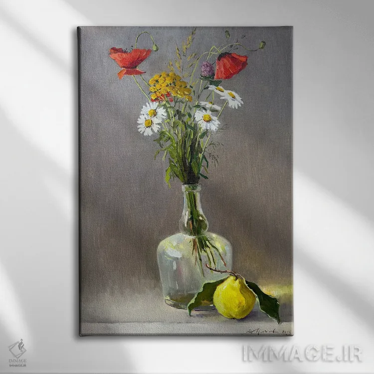 در این اثر، «طبیعت بیجان با گلهای وحشی و سیب ۲» اثرِ «اوگنیا مکانوا» دیوار را از تزئین به «حضور» تبدیل میکند؛ برای فضاهای مدرن با خطوط ساده پیشنهاد میشود. برای پروژههای طراحی داخلی هم گزینهای قابل اتکاست.