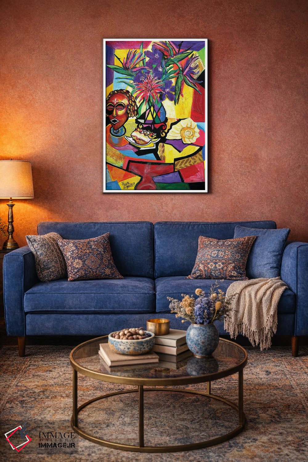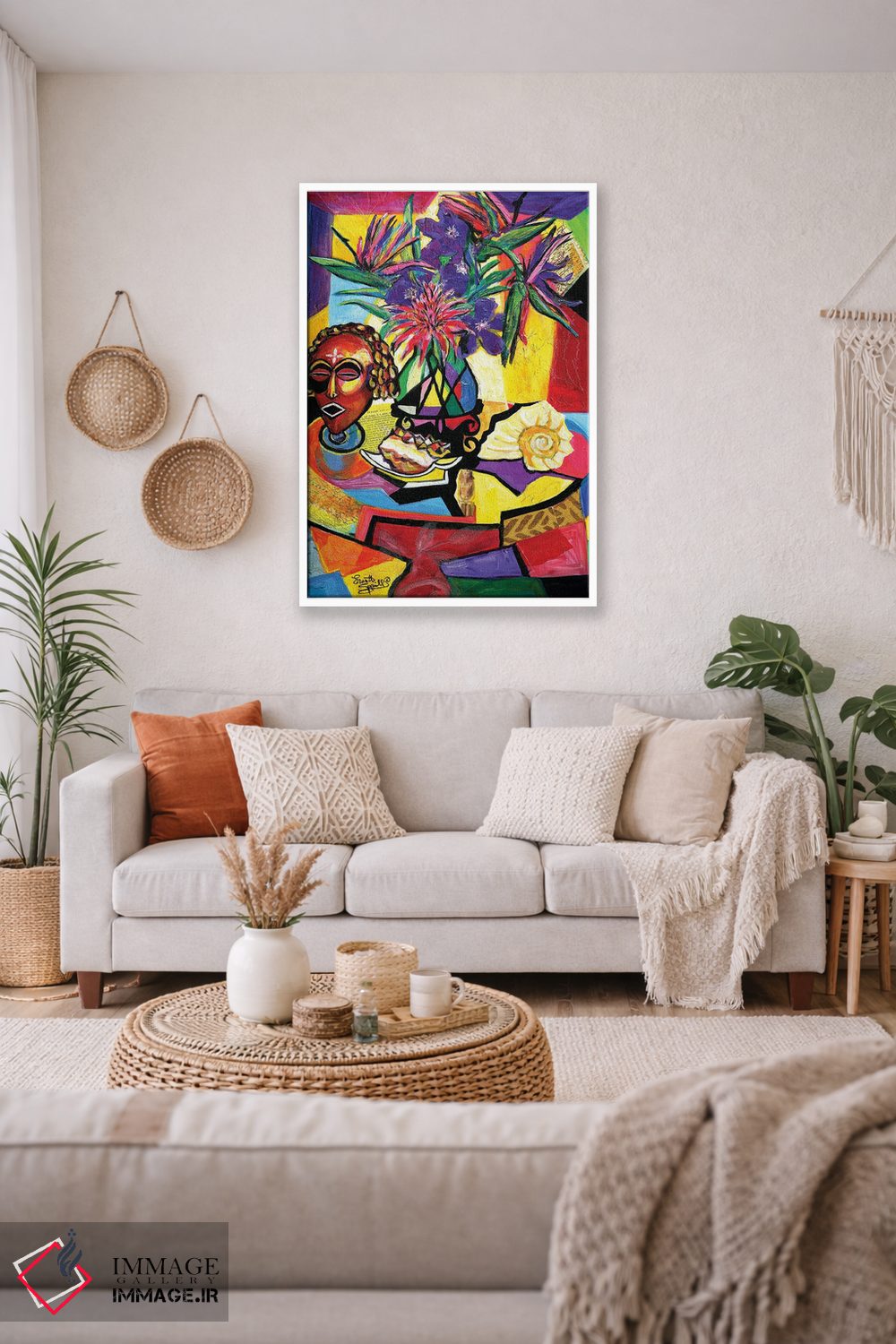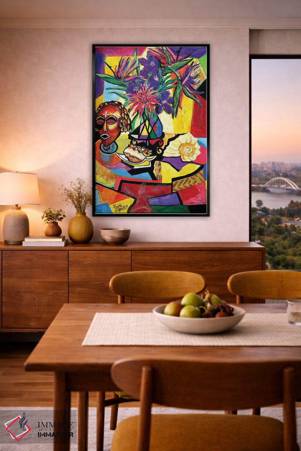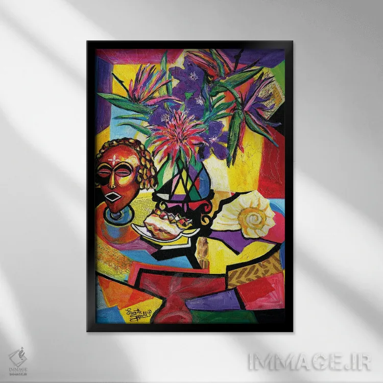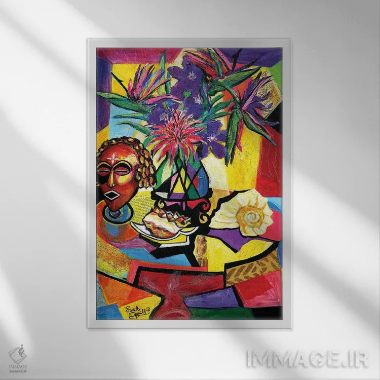 براساس پالت ترکیبی اثر، قاب تیک گرم (چوبی) پیشنهاد اول است و مشکی مات (فریم متوسط) مکمل. برای سفارشهای پروژهای با ابعاد و قابهای اختصاصی با ایماژ در تماس باشید.