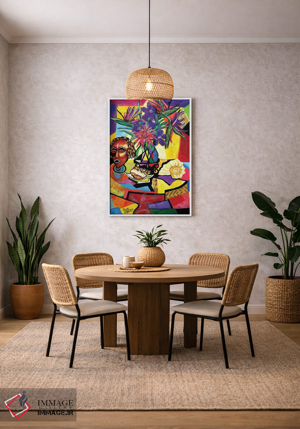 بوم گالری ایماژ طوری طراحی شده که اثر روی دیوار «پرداختشده» و حرفهای دیده شود—نه پرزرقوبرقِ بیپایه؛ بلکه دقیق و خوشپرداخت. با بافت ظریف کنواس، حس اثر هنری را در نگاه نزدیک نگه میدارد و همین «پرداخت» تفاوت را میسازد. قابپذیری باعث میشود بتواند اثر را نقطهٔ کانونی فضا کند و برای فضاهای رسمیتر هم انتخاب مطمئنی است. برای سفارش اندازه یا قاب متفاوت، تیم ایماژ راهنمایی میکند تا انتخاب نهایی هماهنگتر باشد؛ در فضاهای کاری، این نظم بصری خیلی به چشم میآید.