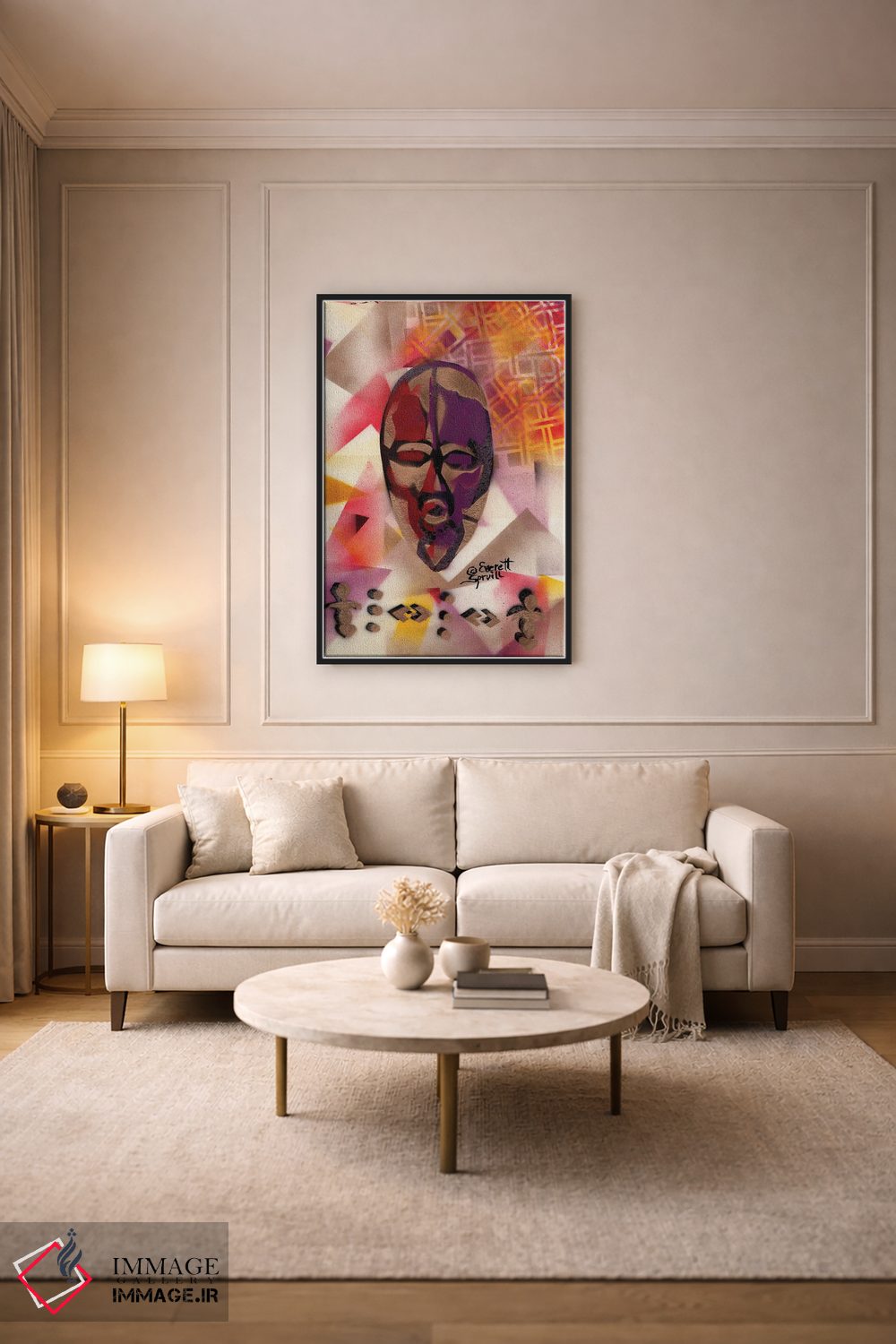 براساس پالت گرم اثر، قاب تیک گرم (چوبی) پیشنهاد اول است و مشکی مات (فریم متوسط) مکمل. برای سفارشهای پروژهای با ابعاد و قابهای اختصاصی با ایماژ در تماس باشید.