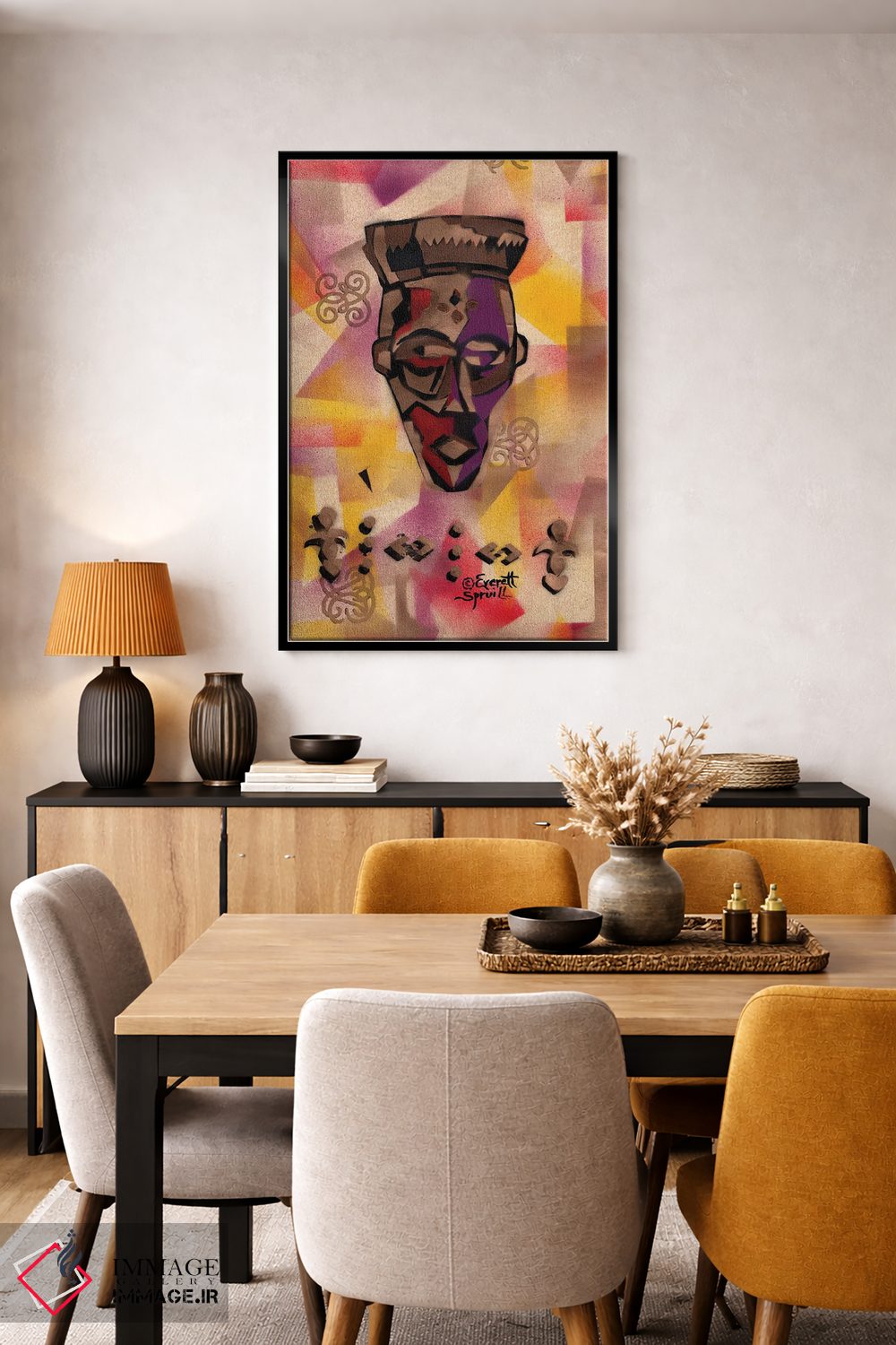 براساس پالت گرم اثر، قاب تیک گرم (چوبی) پیشنهاد اول است و مشکی مات (فریم متوسط) مکمل. برای سفارشهای پروژهای با ابعاد و قابهای اختصاصی با ایماژ در تماس باشید.