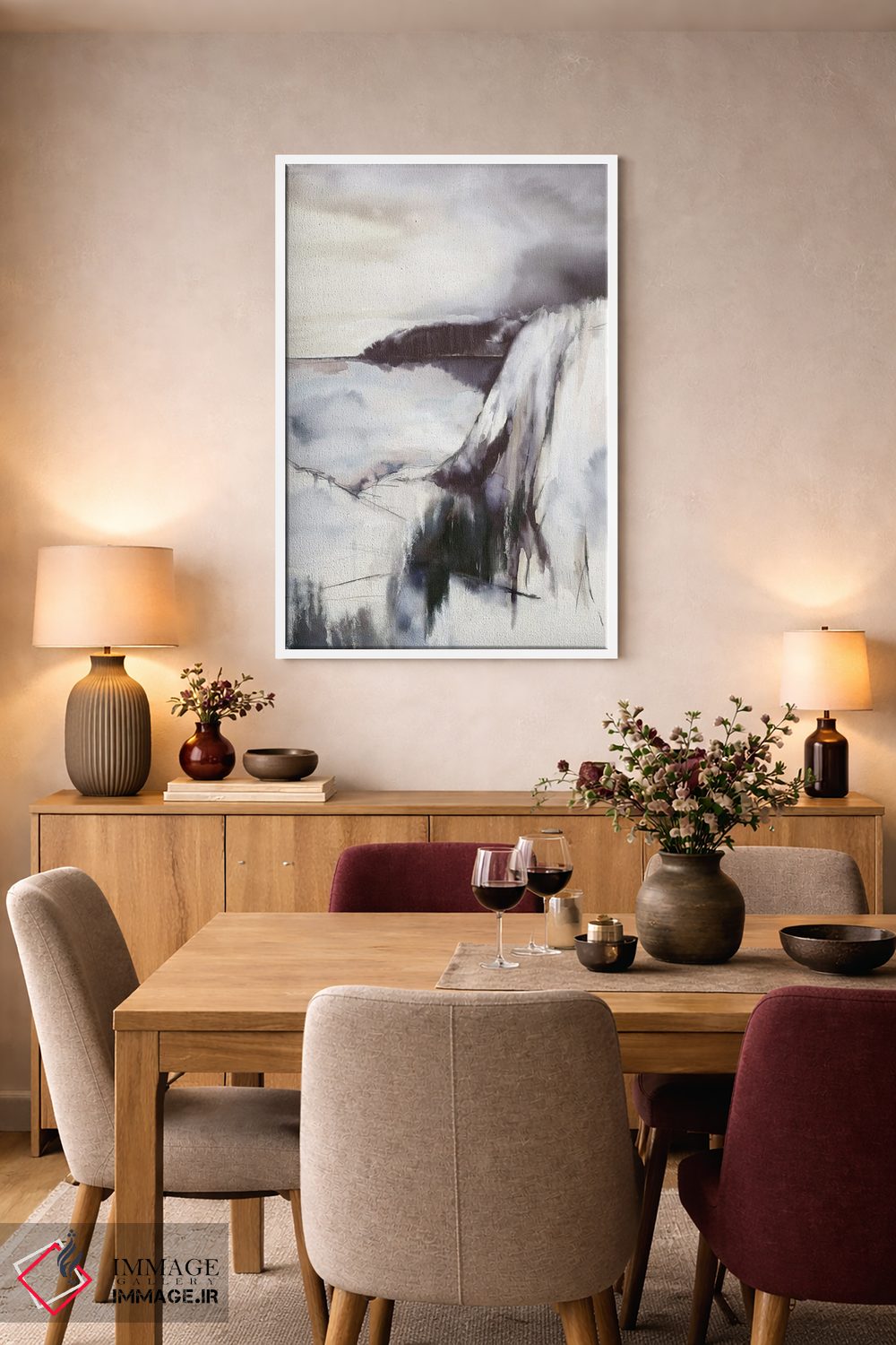 ساختار بوم گالری ایماژ طوری است که اثر روی دیوار «پرداختشده» و حرفهای دیده شود—نه پرزرقوبرقِ بیپایه؛ بلکه دقیق و خوشپرداخت. بافت ظریف کنواس کمک میکند حس اثر هنری را در نگاه نزدیک نگه میدارد و برای محیطهای رسمیتر هم انتخاب مطمئنی است. با رنگهای آرشیوی Epson UltraChrome HDR، تونهای حساس را طبیعیتر بازآفرینی میکنند بهخصوص وقتی نور موضعی ملایم داشته باشید. حاصل کار، یک تابلو خوشنشین است که هم از دور اثرگذار است و هم از نزدیک خوشخوان؛ برای هدیهی هنری هم انتخاب محترمانهای است. در کنار چوب و متریالهای طبیعی، بافت کنواس دلنشینتر دیده میشود.