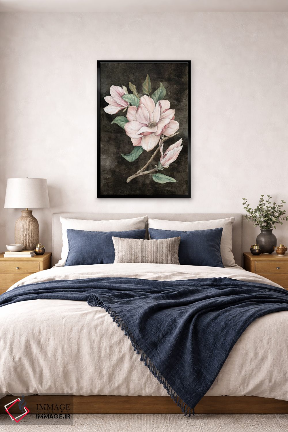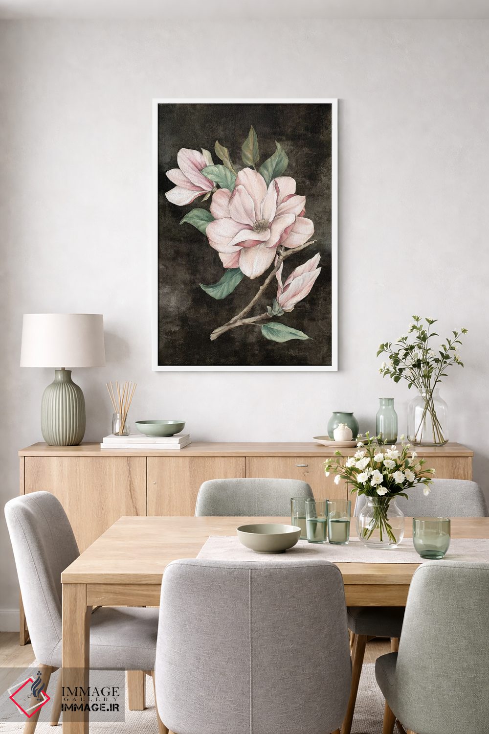 «مگنولیا صورتی ۱ (گل تزئینی)» اثرِ «اوا واتس» میتواند تعادل رنگیِ لطیفی به چیدمان بدهد؛ برای دکورهای اسکانباوراوی پیشنهاد میشود. فضا را شلوغ نمیکند؛ فقط لطیفترش میکند.
