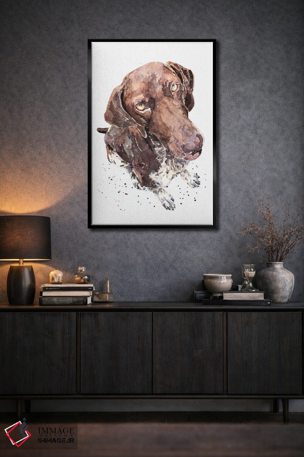 «جی.اس.پی ۲ (اشاره به سگ اشارهگر کوتاهمو آلمانی)» اثرِ «ادز واترکالرز (برند نقاشی آبرنگ)» میتواند حس طبیعت را بیدغدغه وارد خانه کند؛ برای نشیمنهای خانوادگی پیشنهاد میشود. به دیوار، قصه میدهد—اما قصهای آرام و شیک.
