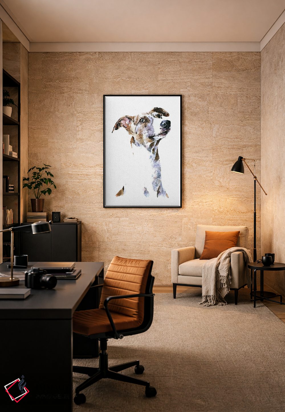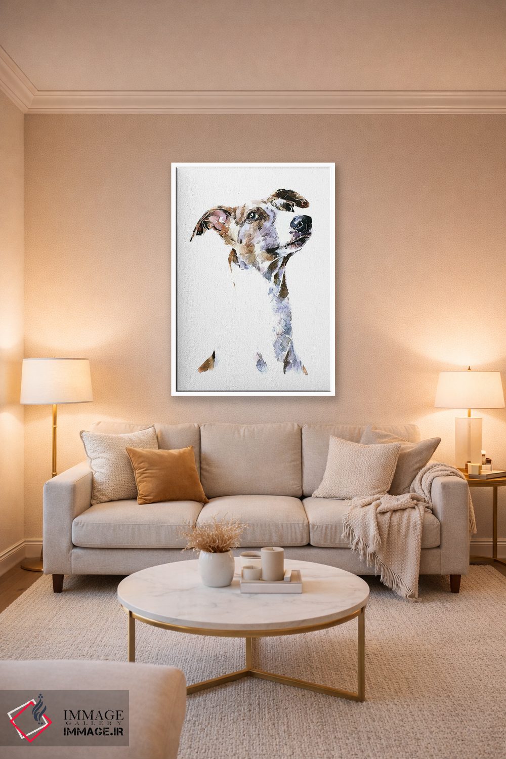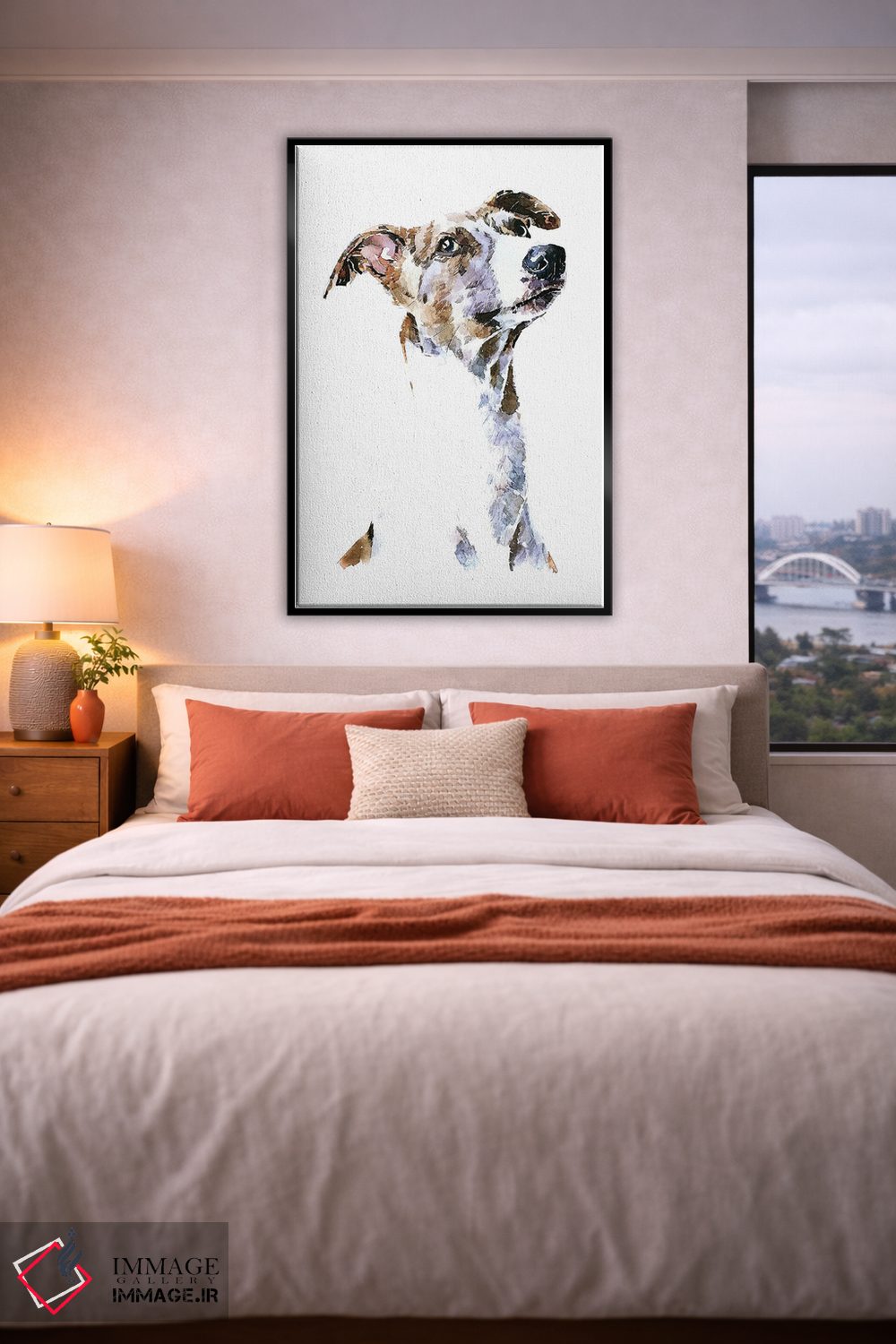 این اثر با عنوان «ویپت (نژاد سگ)» اثرِ «ادز واترکالرز (برند نقاشی آبرنگ)» یک لبخند ریز به چیدمان میدهد؛ برای راهروها و ورودیهای گرم انتخابی خوشسلیقه است. در کنار گیاهان و نور طبیعی، جذابتر هم میشود.