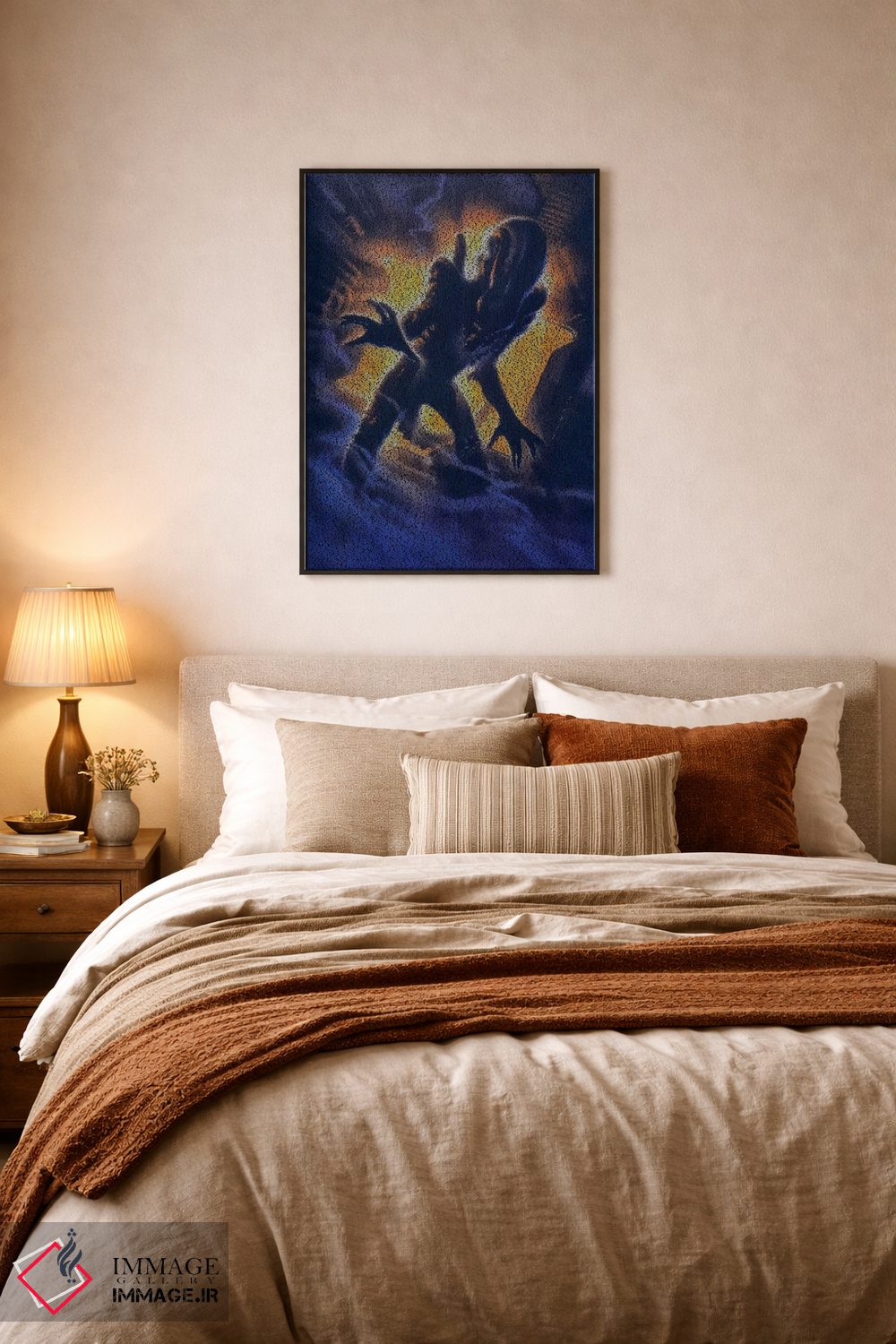 بوم گالری ایماژ نسخهی چیدماناتیوِ باکیفیت از یک اثر هنری است؛ روی کنواس بدون اسید با بافت ظریف و یکنواخت با چاپ هنری به استاندارد جیکلی (Giclée) با رنگدانههای آرشیوی و سیستم رنگ دقیق؛ روی دیوار، کار یکدستتر و خوشکیفیتتر دیده میشود. سفارشیسازی و آمادهسازی تمیز باعث میشود اثر روی دیوار مرتب و حرفهای بنشیند. امکان انتخاب قاب از گزینههای سایت وجود دارد و برای سفارشهای ویژه هم میتوانید با ایماژ هماهنگ کنید.