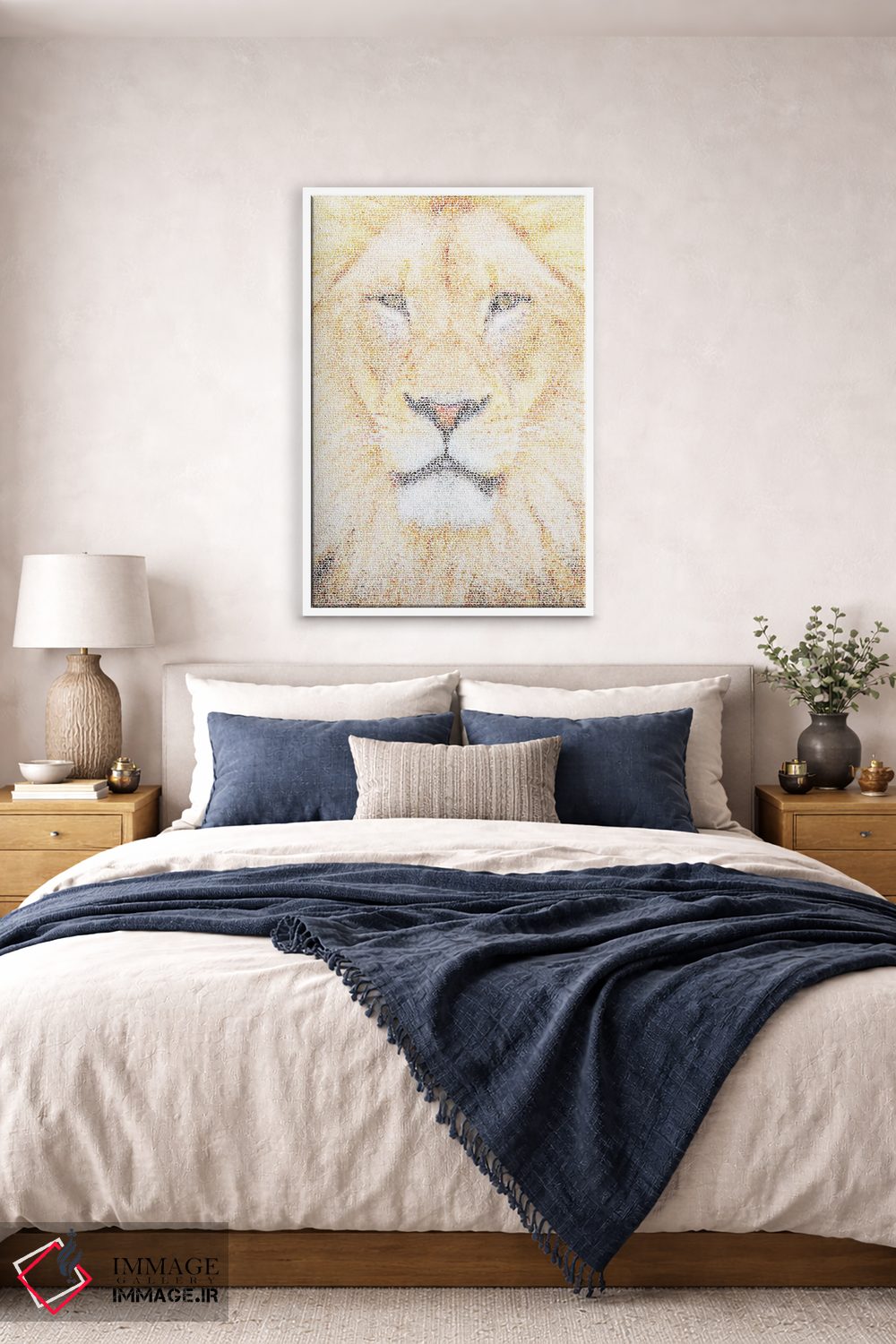 برای اتاقی که به یک عنصر دوستداشتنی نیاز دارد، «پادشاه» اثرِ «گوسفند رباتی (نام هنری)» حس طبیعت را بیدغدغه وارد خانه میکند؛ برای فضاهای روستیک یا بوهو انتخابی خوشسلیقه است. با نورپردازی نقطهای، جذابتر هم میشود.