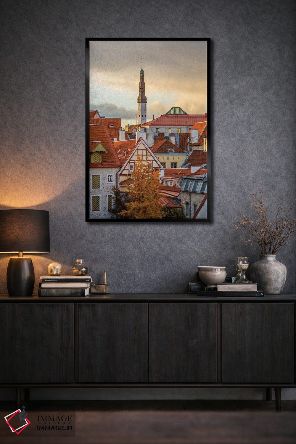 در نگاه اول، «کشورهای بالتیک، استونی، تالین. بامهای نزدیک دیوارهای شهر» اثرِ «امیلی ویلسون» دیوار را از تزئین به «حضور» تبدیل میکند؛ برای نشیمنهای صمیمی و پذیراییهای شیک پیشنهاد میشود. یک انتخاب خوشسلیقه است که با گذر زمان هم تازه میماند.