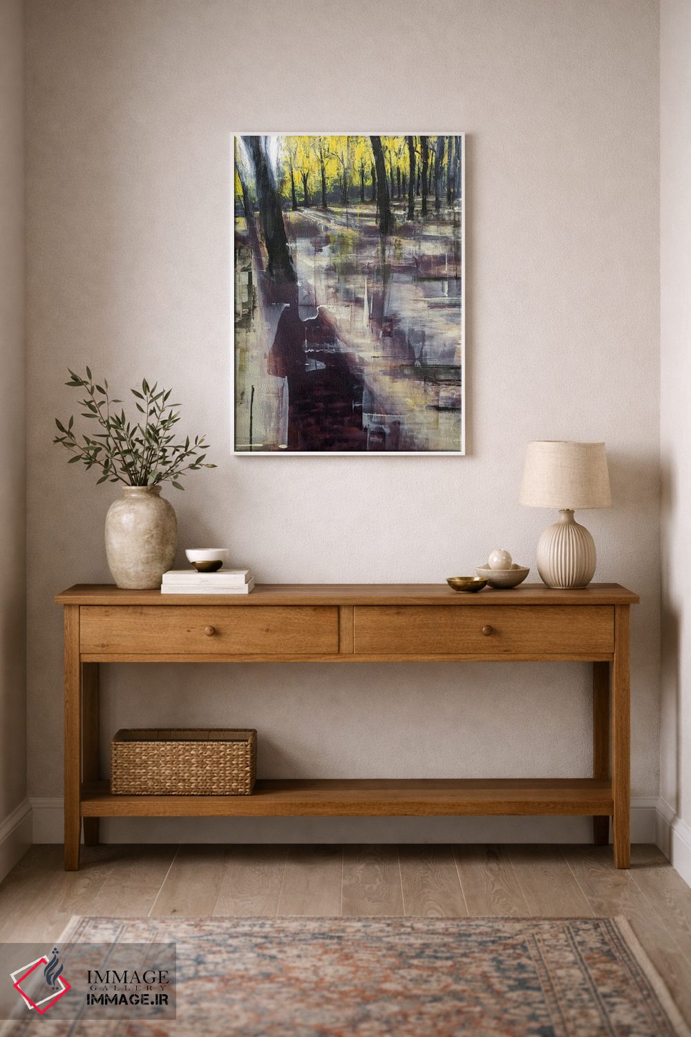 «رنگهای پاییز» اثرِ «ادوارد وارکنتین» با زبان هنری، کنار رنگهای خنثی و متریالهای مدرن (بتن، فلز، چوب) خیلی خوب مینشیند.