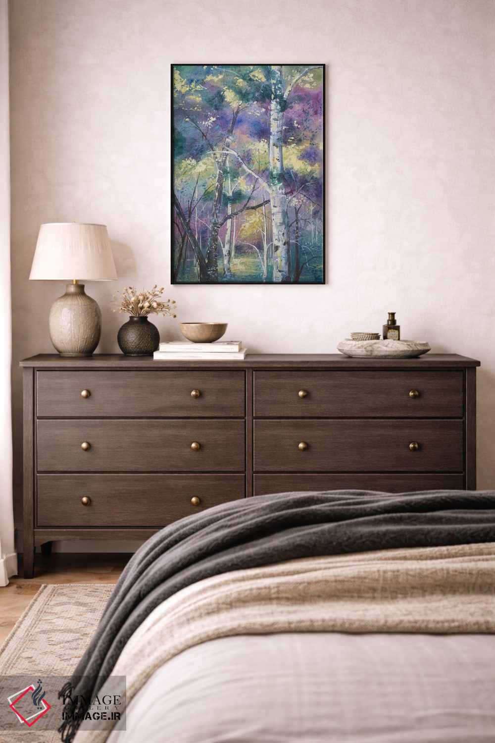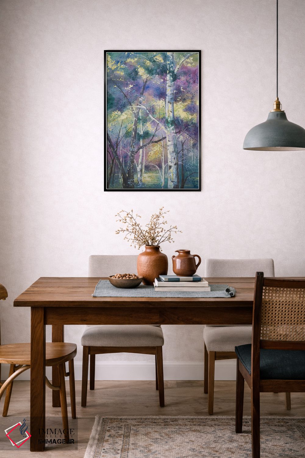 بوم گالری ایماژ نسخهی دکوراتیوِ سطحبالا از یک اثر هنری است. روی کنواس سفیدِ یکدست و بدون اسید با چاپ هنریِ دقیق (Giclée) برای گذارهای نرمتر و وضوح بالاتر با سیستم رنگ Epson UltraChrome HDR برای نیمسایههای نرمتر و سایههای جزئیتر؛ حس نهایی نزدیکتر به ارائهی گالریوار است؛ نه صرفاً یک تصویر. هر تابلو بهصورت سفارشی روی چهارچوب کشیده میشود و با یراق مناسب آمادهی نصب است. برای پروژههای معماری داخلی یا فضاهای خاص، همکاری حرفهای را با ایماژ میتوان آغاز کرد.