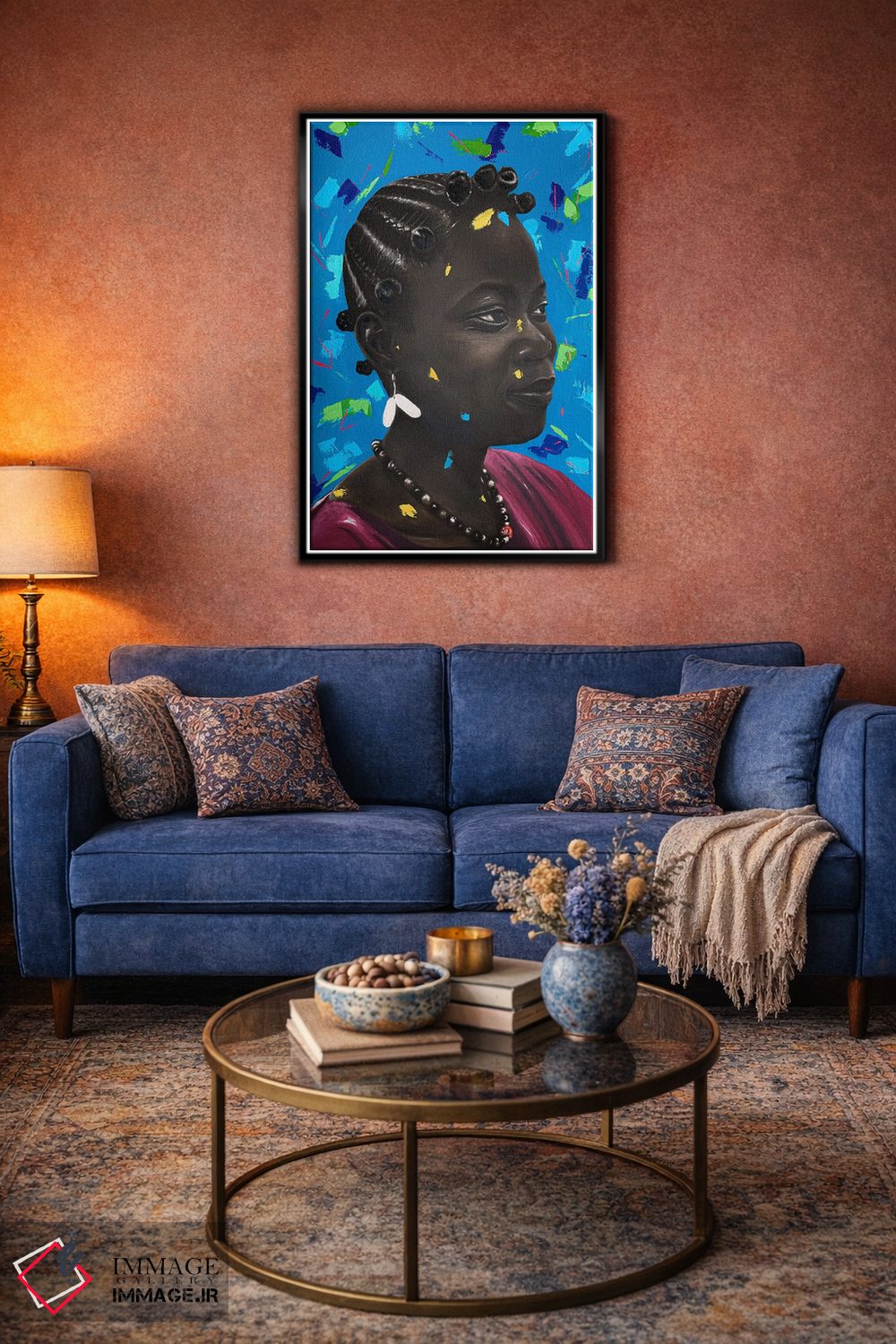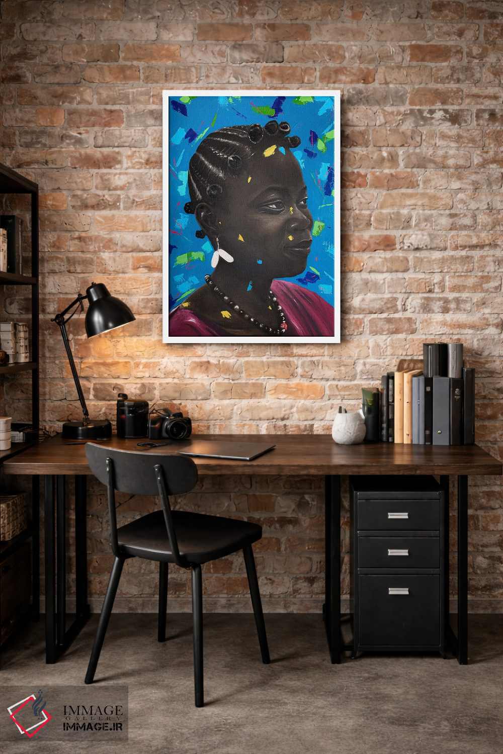براساس پالت ترکیبی اثر، قاب تیک گرم (چوبی) پیشنهاد اول است و مشکی مات (فریم متوسط) مکمل. برای سفارشهای پروژهای با ابعاد و قابهای اختصاصی با ایماژ در تماس باشید.