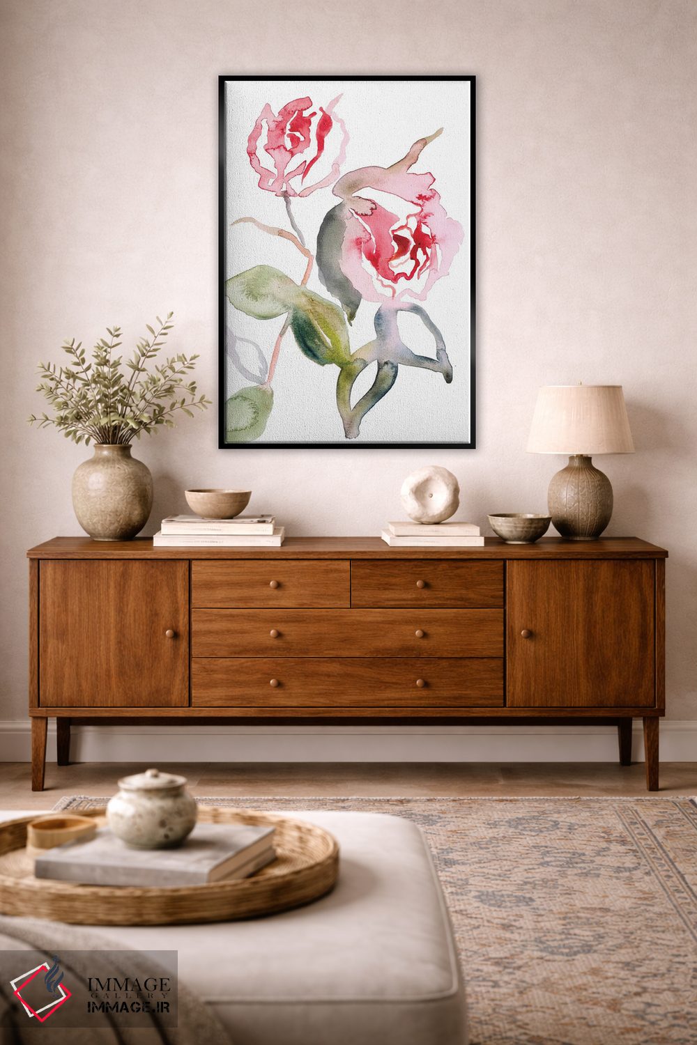 برای دیواری که میخواهید نرمتر دیده شود، «مطالعه رز شماره ۵۶» اثرِ «الیزابت بکر» برای دیوارهای ساده، یک لطافتِ دقیق میسازد؛ برای اتاق خواب انتخابی خوشسلیقه است. با قاب روشن یا چوبی، حس طبیعیتری پیدا میکند.