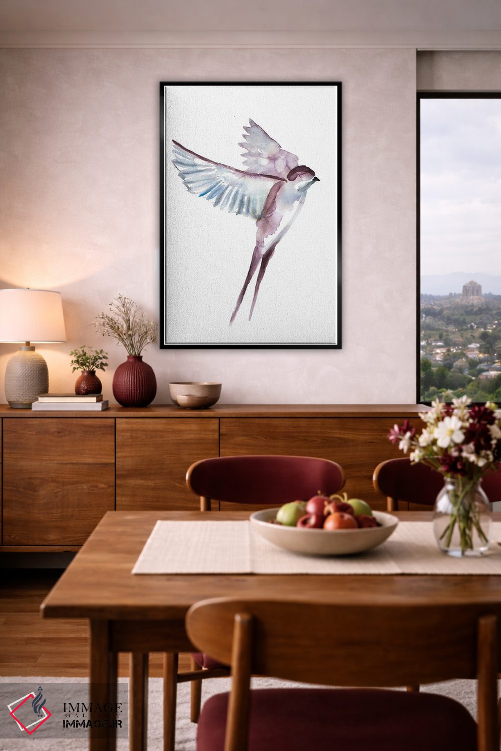 «پرستو شمارهٔ ۴۲» اثرِ «الیزابت بکر» میتواند به دیوار، انرژیِ نرم و زنده بدهد؛ برای اتاق بازی یا گوشهٔ مطالعه پیشنهاد میشود. با نورپردازی نقطهای، جذابتر هم میشود.