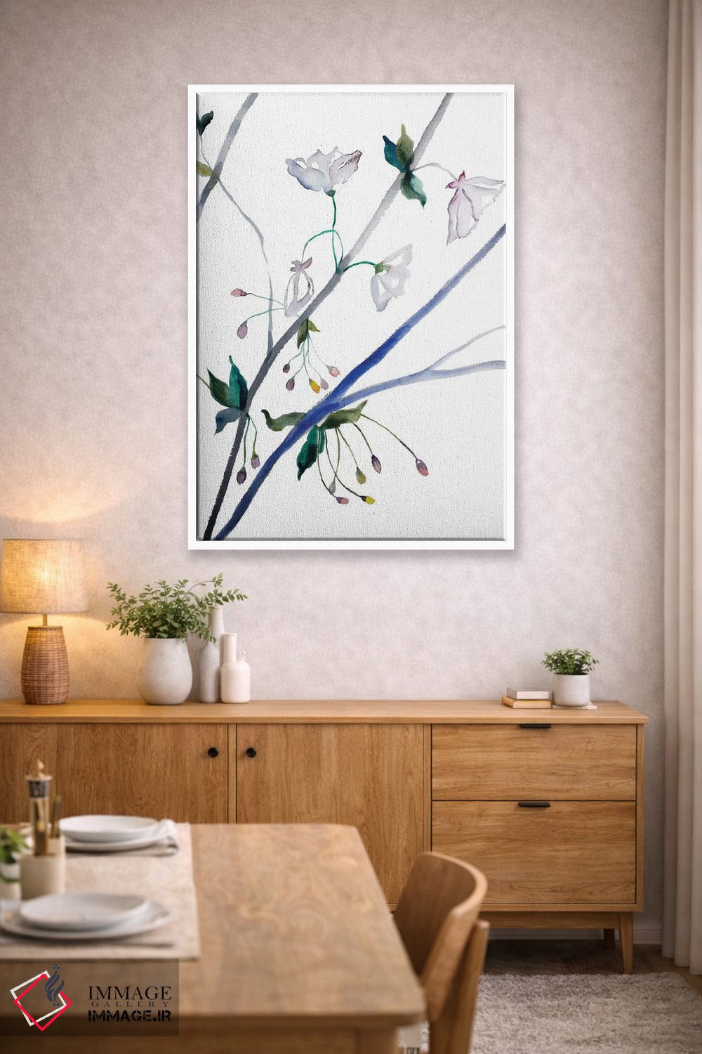 تابلو مینیمال شکوفه گیلاس شماره ۳۴ اثر الیزابت بکر - نمای روبه‌رو روی دیوار