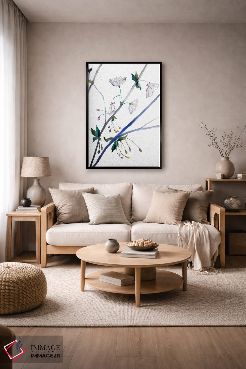 تابلو مینیمال شکوفه گیلاس شماره ۳۴ اثر الیزابت بکر - نمای قاب‌دار سفید
