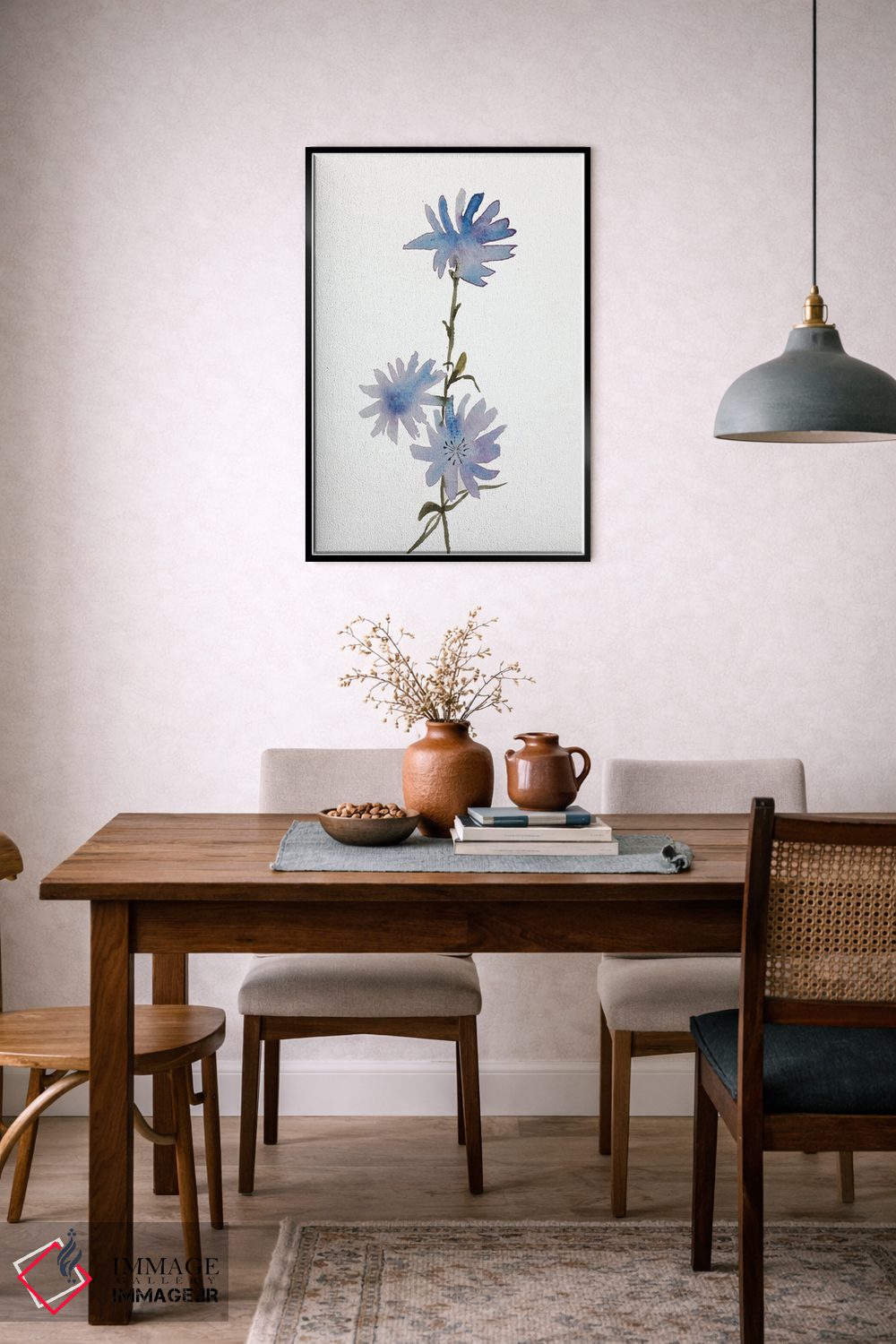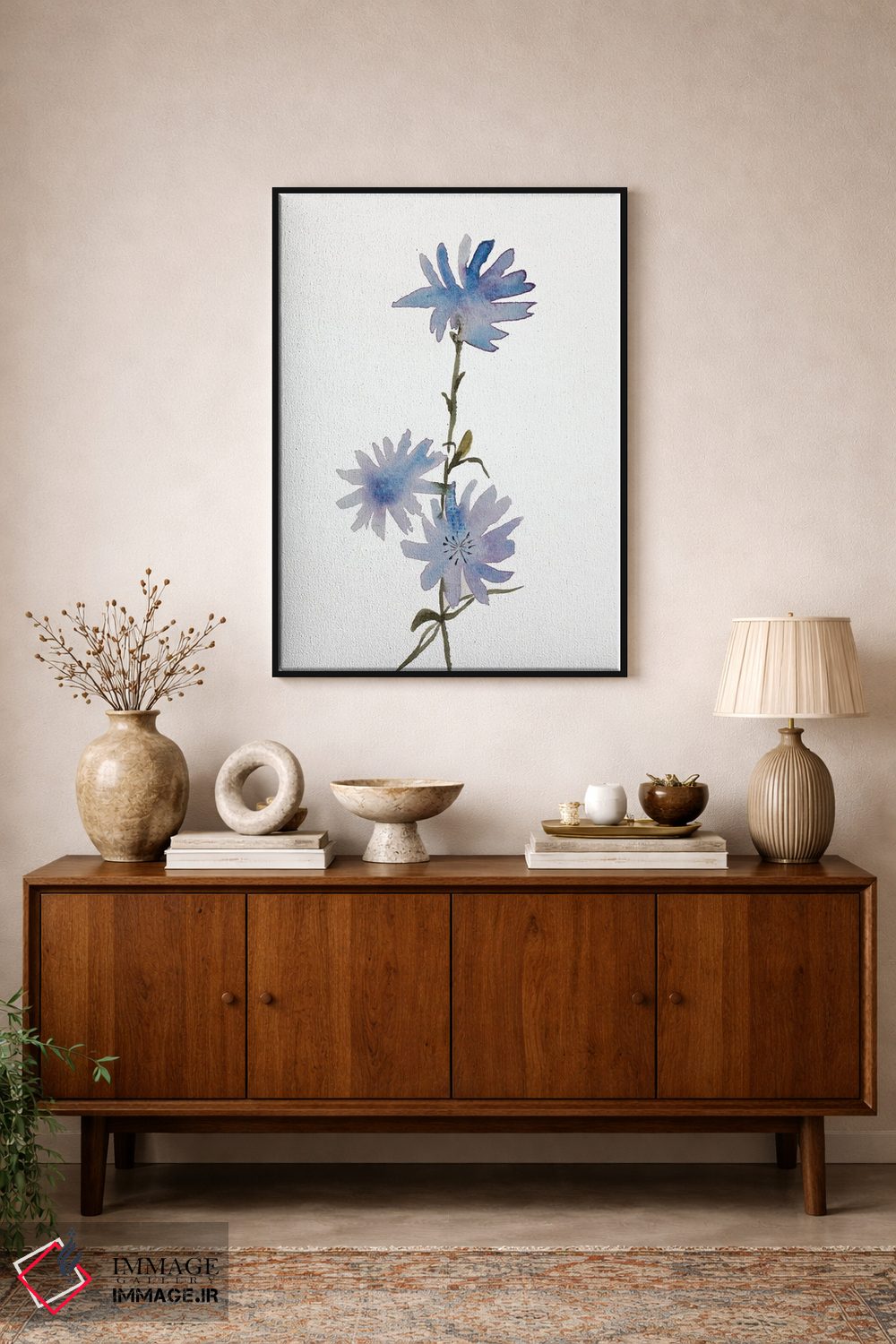 در «کاسنی» اثرِ «الیزابت بکر»، گلها و گیاهان فضا را نرمتر و مهماننوازتر میکند؛ برای کنار میز آرایش یا کنسول انتخابی خوشسلیقه است. فضا را شلوغ نمیکند؛ فقط لطیفترش میکند.