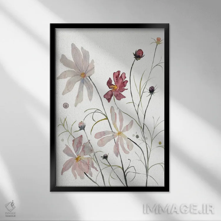 اگر دوست دارید دیوار روشنتر و آرامتر دیده شود، «کاسموس شمارهٔ ۲ (نوع گل)» اثرِ «الیزابت بکر» حس طراوت را بدون شلوغی وارد اتاق میکند، برای اتاق خواب گزینهٔ مناسبیست. حضورش آرام است، اما بیاثر نیست.
