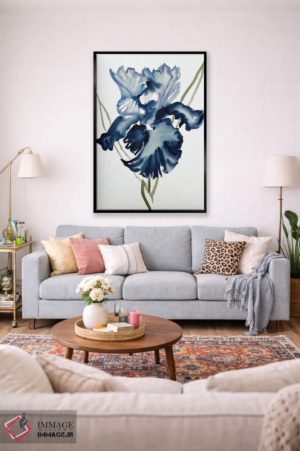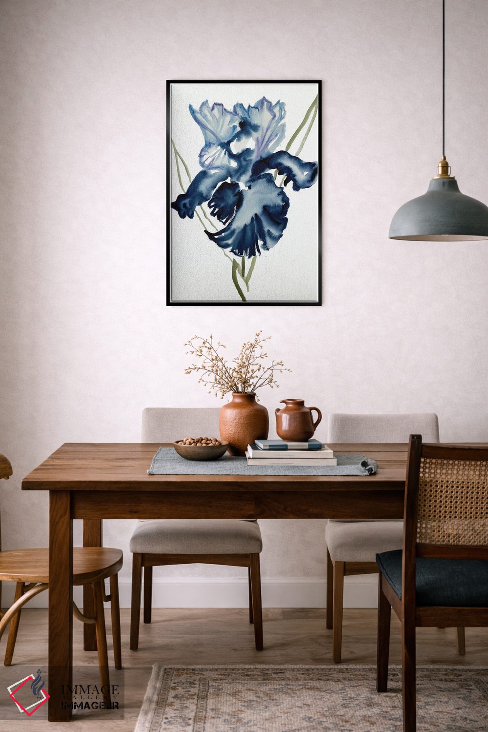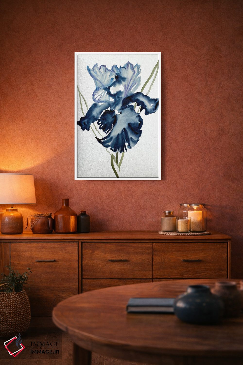 برای دیواری که میخواهید نرمتر دیده شود، «زنبق شمارهٔ ۱۰۸» اثرِ «الیزابت بکر» برای دیوارهای ساده، یک لطافتِ دقیق میسازد؛ برای فضاهای بوهمی انتخابی خوشسلیقه است. با قاب روشن یا چوبی، حس طبیعیتری پیدا میکند.