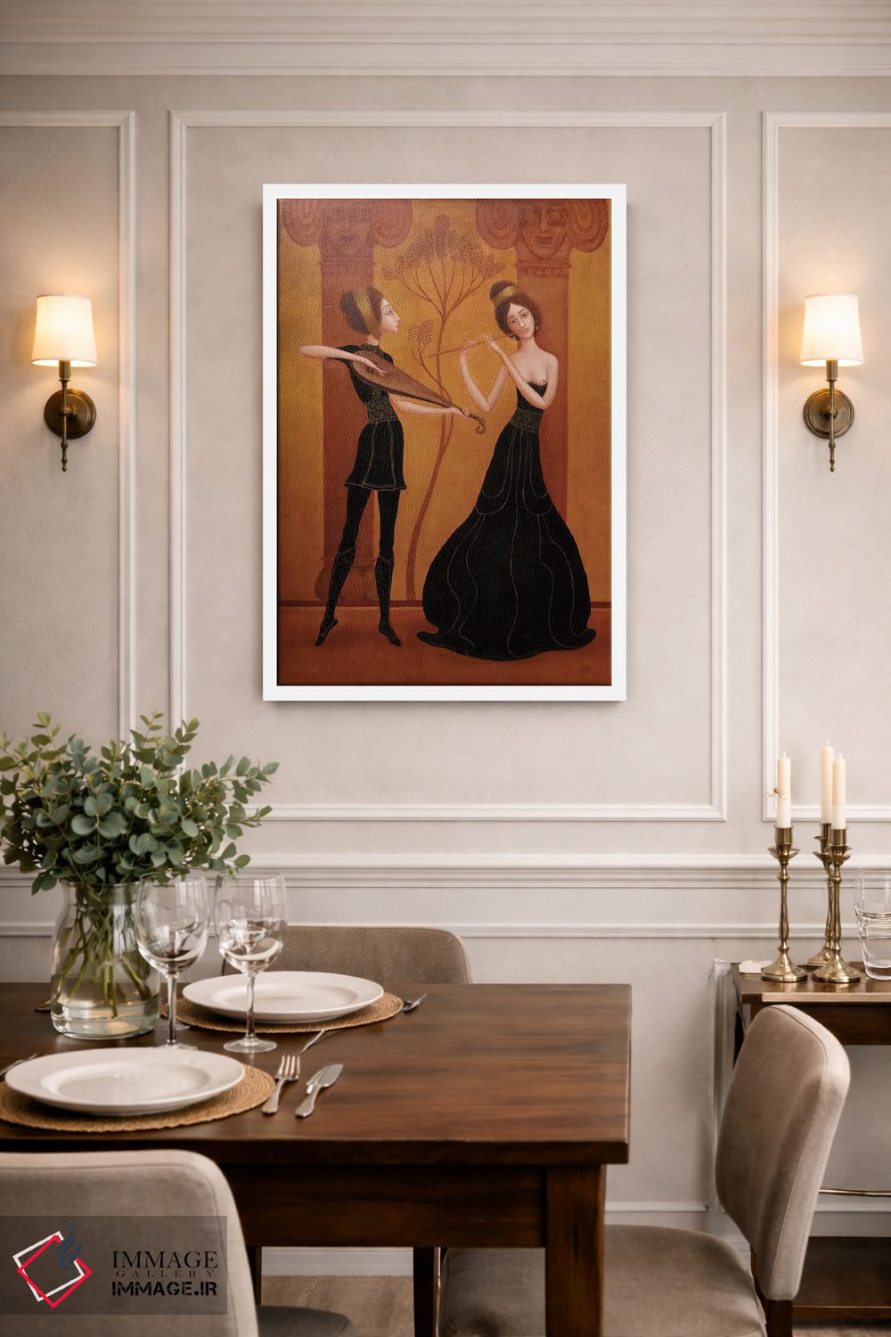 براساس پالت گرم اثر، قاب تیک گرم (چوبی) پیشنهاد اول است و مشکی مات (فریم متوسط) مکمل. برای سفارشهای پروژهای با ابعاد و قابهای اختصاصی با ایماژ در تماس باشید.