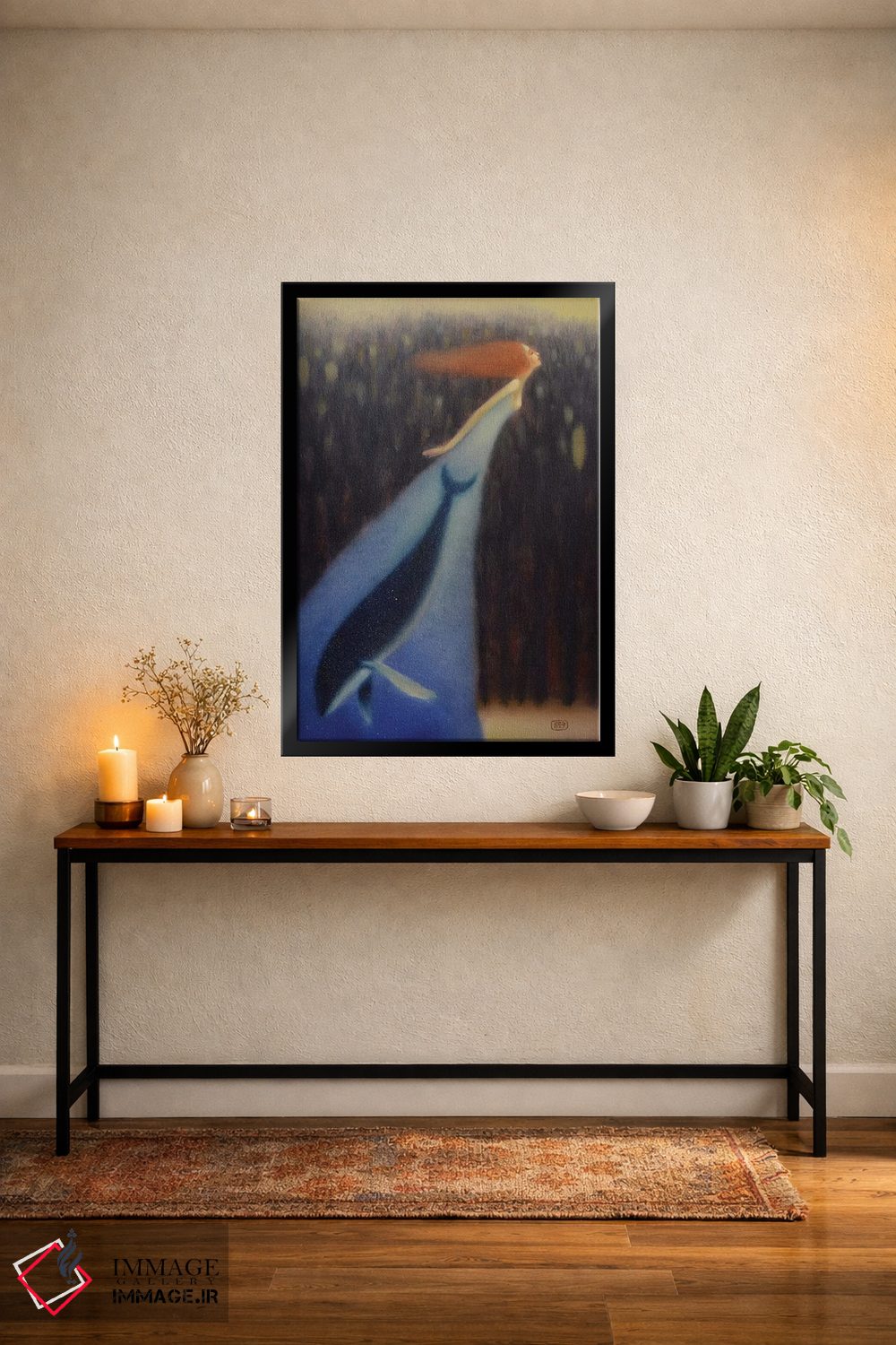 این اثر با عنوان «نهنگی در دل» اثرِ «ادوارد زنتسیک» برای دکورهای مینیمال، یک نقطهٔ توجه میسازد؛ برای دکورهایی با رنگهای خنثی انتخابی خوشسلیقه است. هم فضا را گرم میکند، هم شلوغش نمیکند.