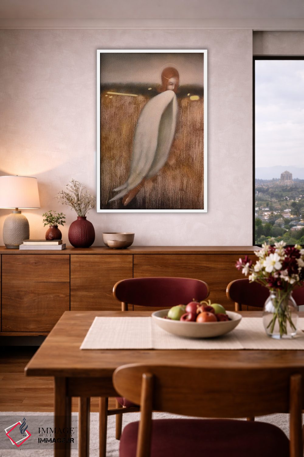 «بالهای فرشته» اثرِ «ادوارد زنتسیک» به فضا عمق میدهد؛ این اثر در اجرای هنری، برای دکورهای کلاسیک—مدرن یک نقطهی کانونی تمیز میسازد.