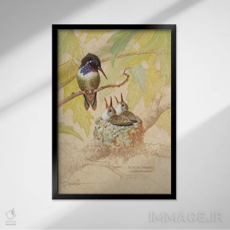تابلو دکوراتیو لانه مرغ مگس خوار سیاه گلو اثر ازرا تاکر