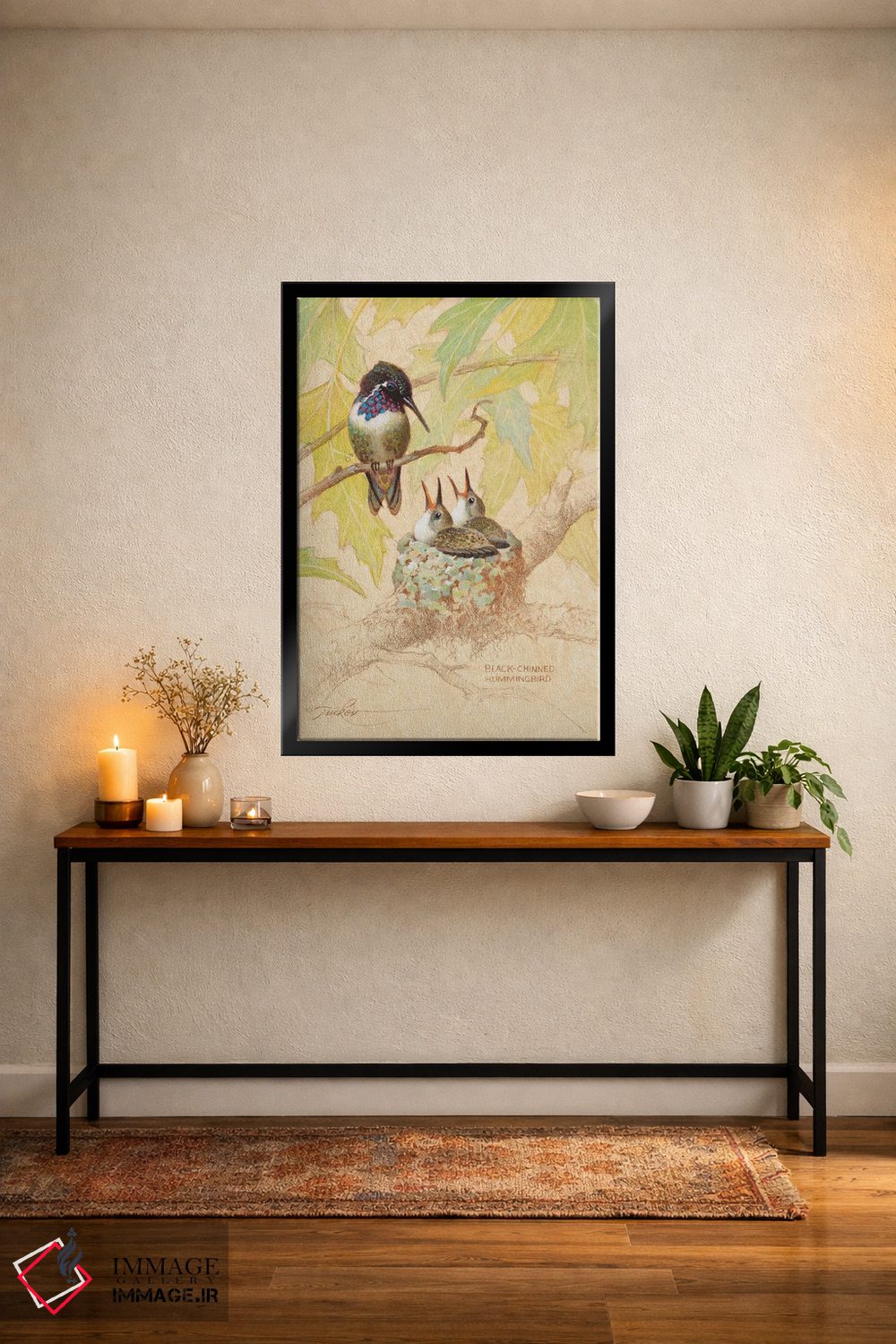 «لانه مرغ مگسخوار سیاهگلو» اثرِ «ازرا تاکر» از آن کارهاییست که حس طبیعت را بیدغدغه وارد خانه میکند؛ برای هدیهدادن به دوستداران حیوانات انتخاب خوبیست. برای دیوار گالریوار هم گزینهٔ خوبیست.